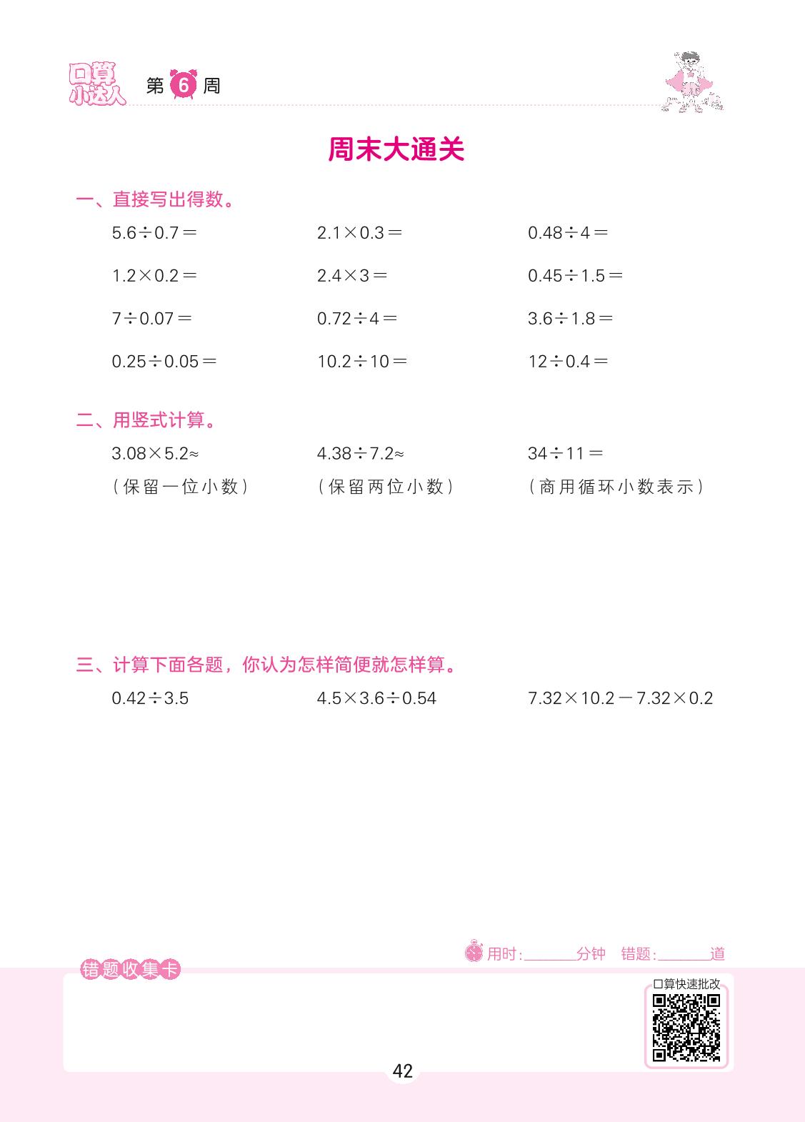 2022上册五年级数学人教版 第6周 周末大通关