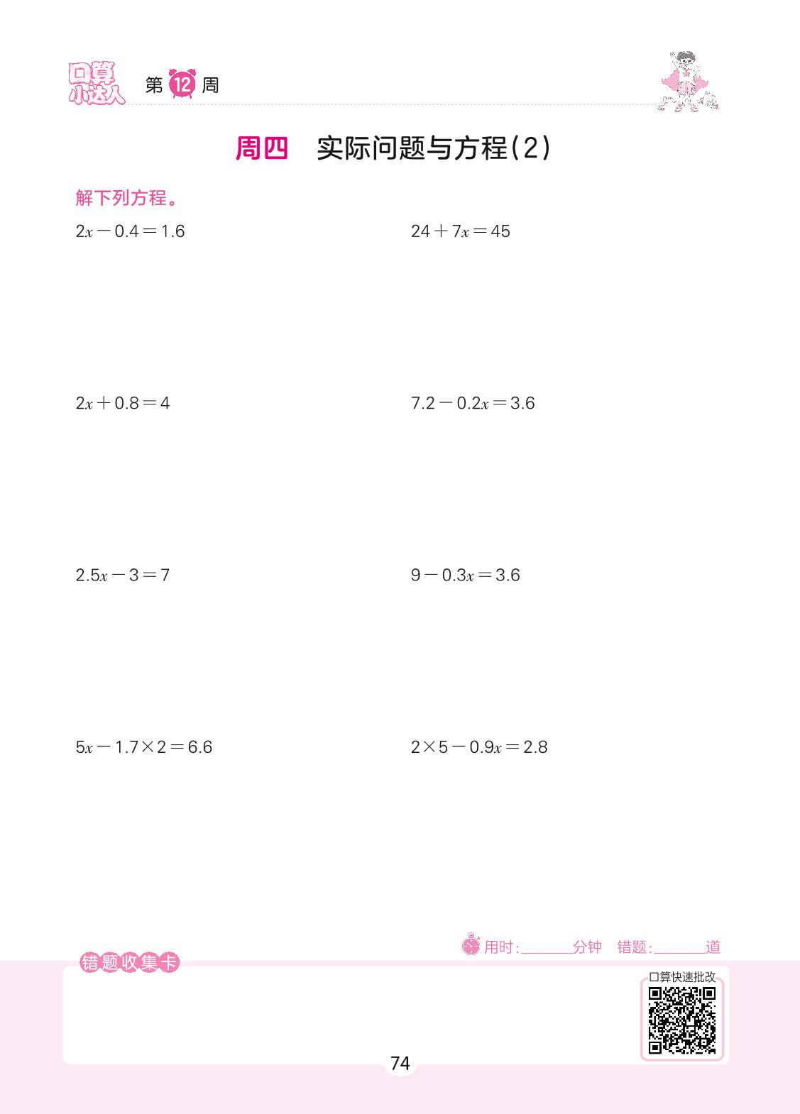 2022上册五年级数学人教版 第12周 周四