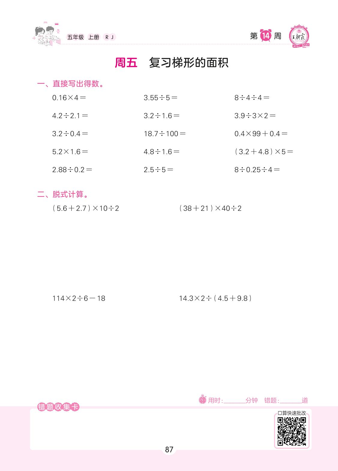 2022上册五年级数学人教版 第14周 周五
