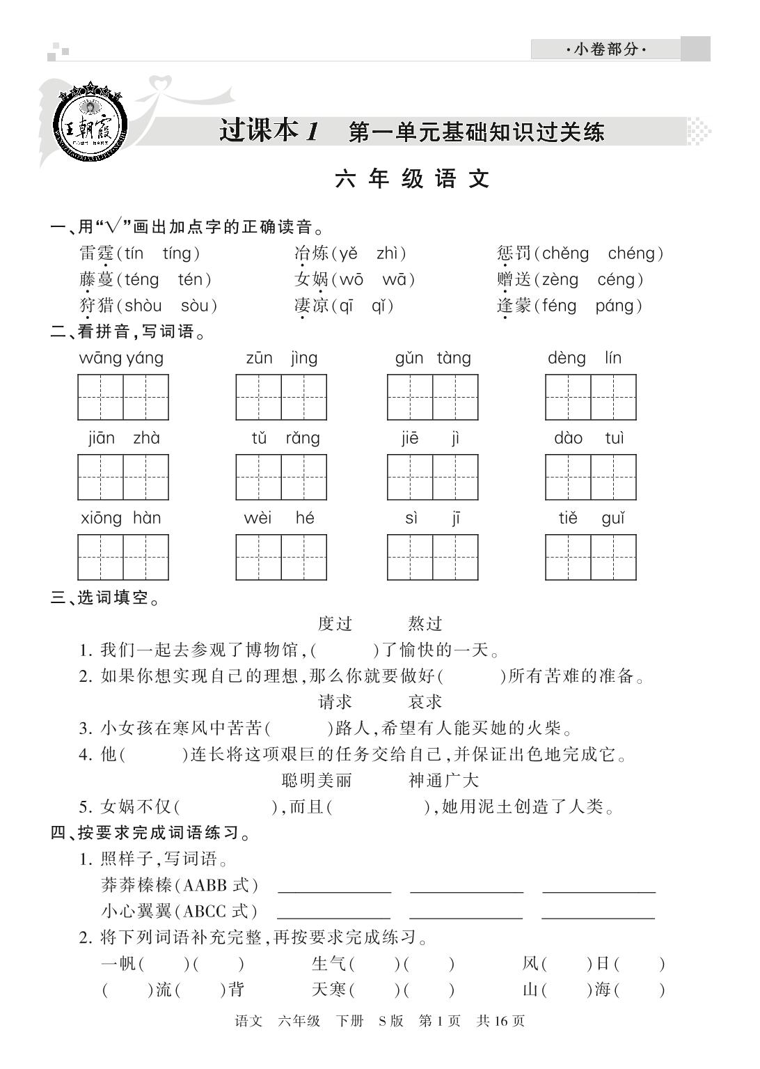 王朝霞期末小卷六年级下册语文(S版)_R21080252105【0】
