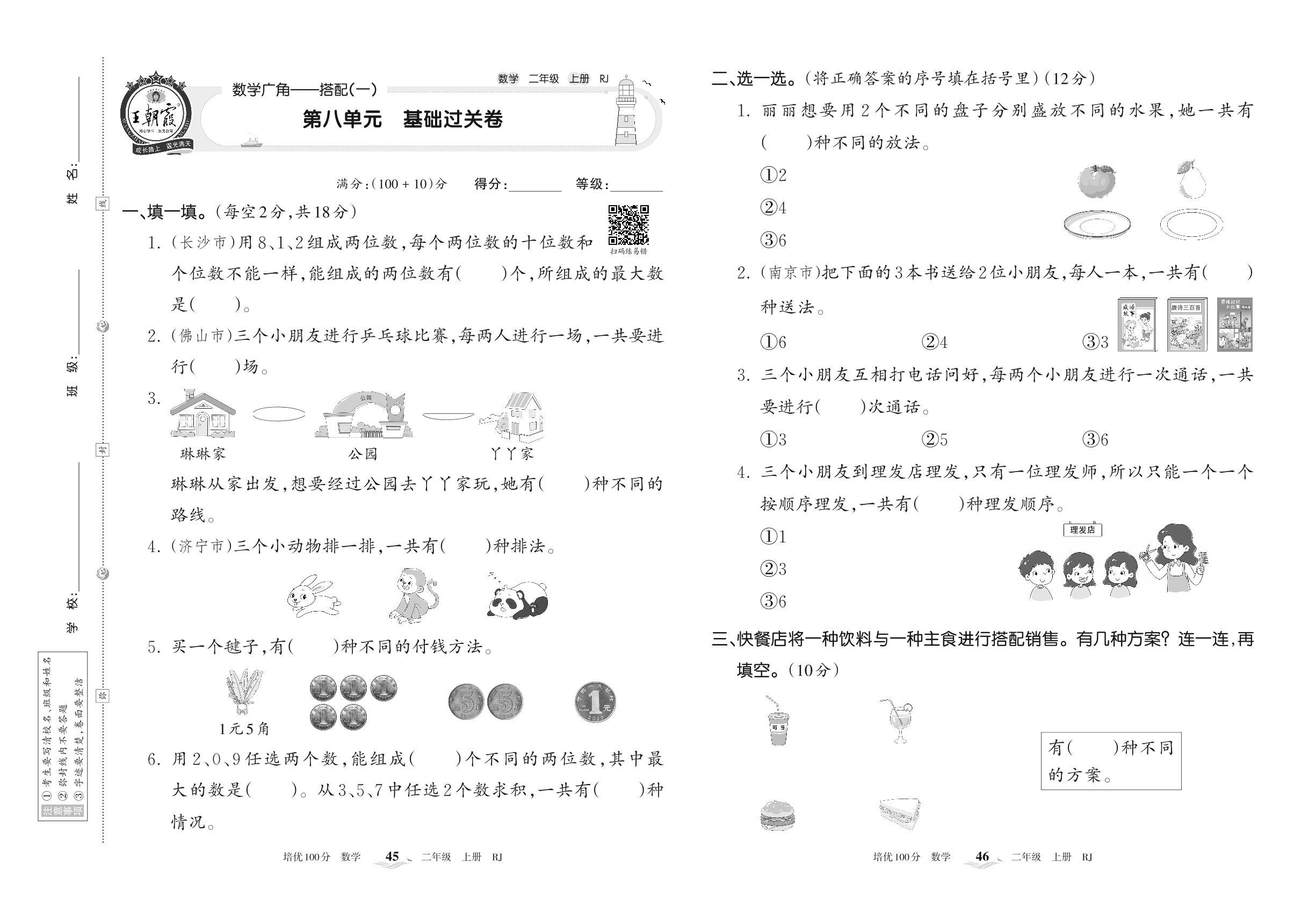 2022上册二年级数学人教版 第八单元 基础过关卷