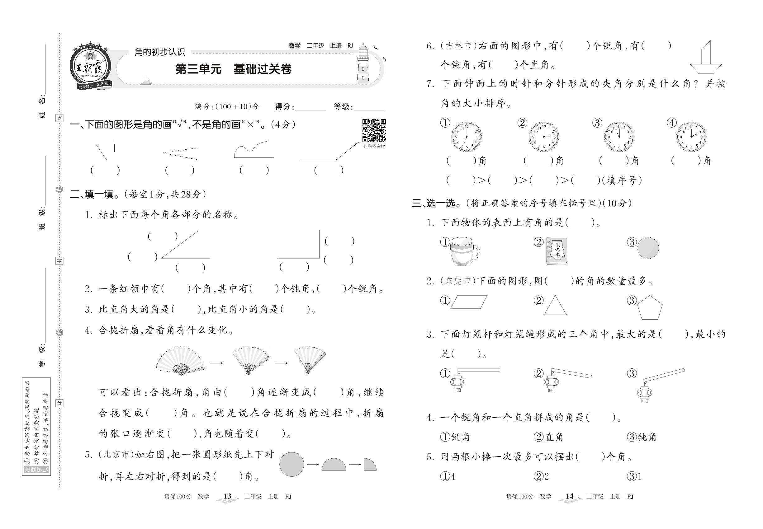 二年级数学人教版上册单元卷
