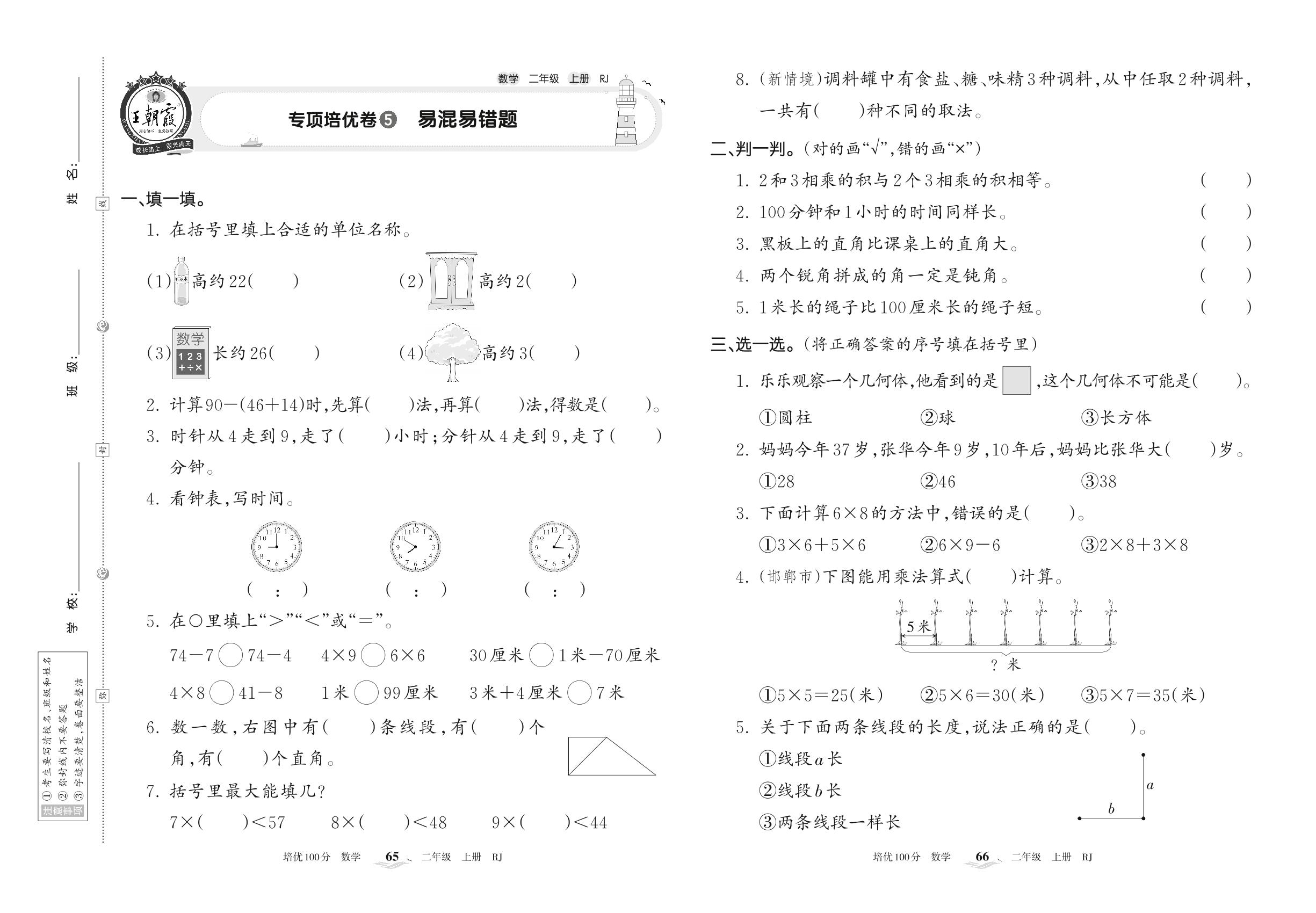 2022上册二年级数学人教版 专项培优卷5 易混易错题