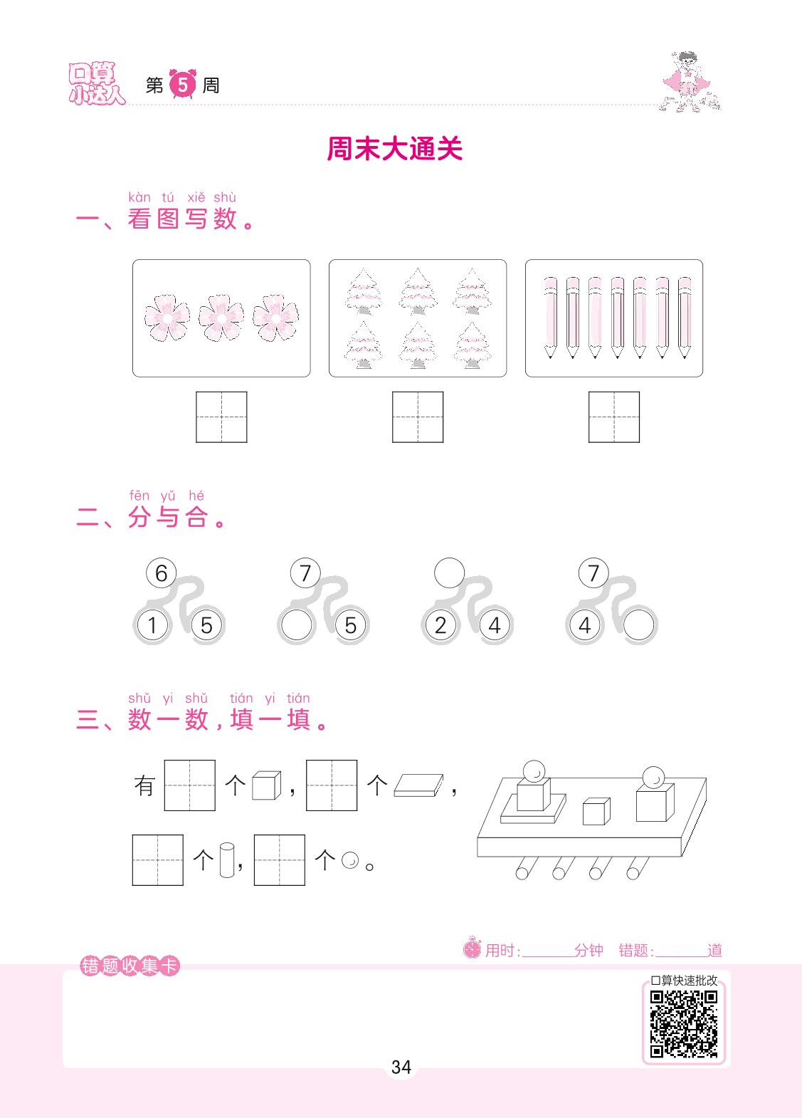 2022上册一年级数学人教版 第5周 周末大通关