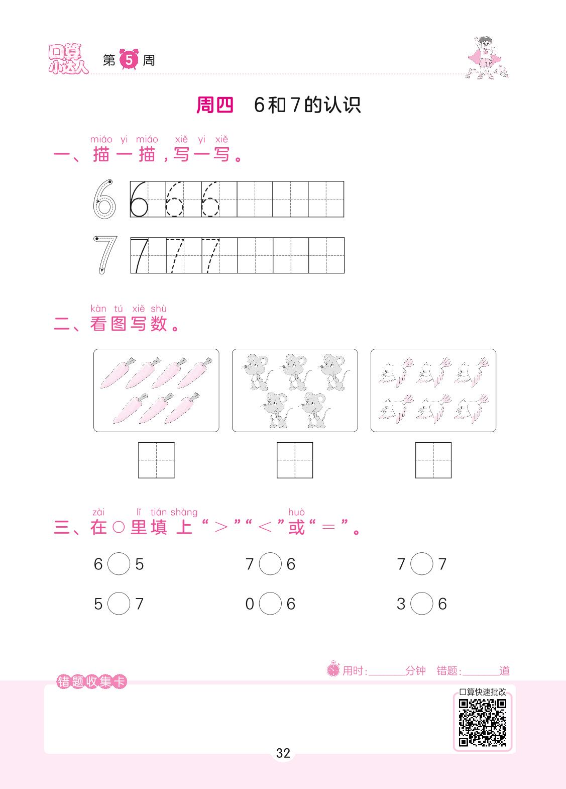 2022上册一年级数学人教版 第5周 周四