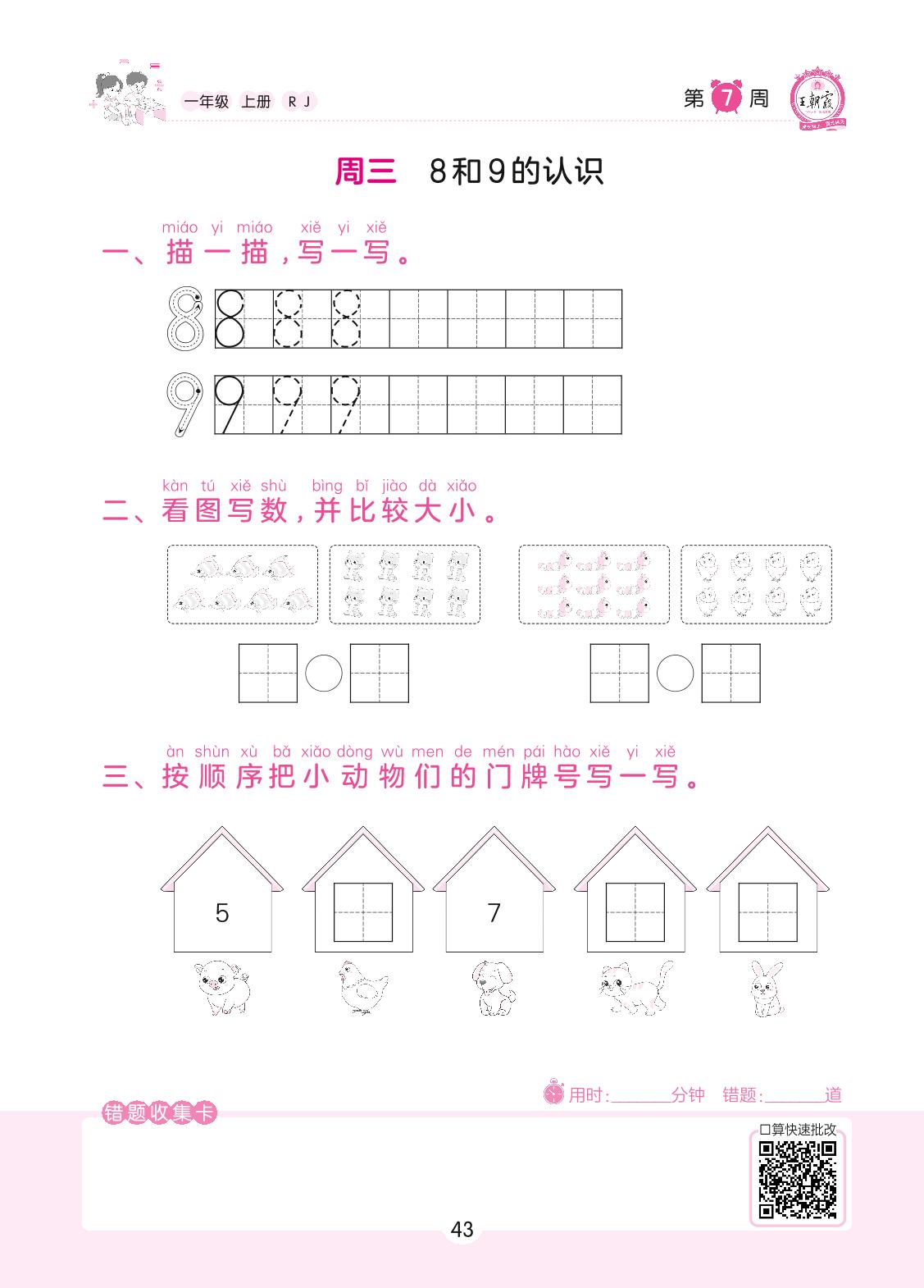 2022上册一年级数学人教版 第7周 周三
