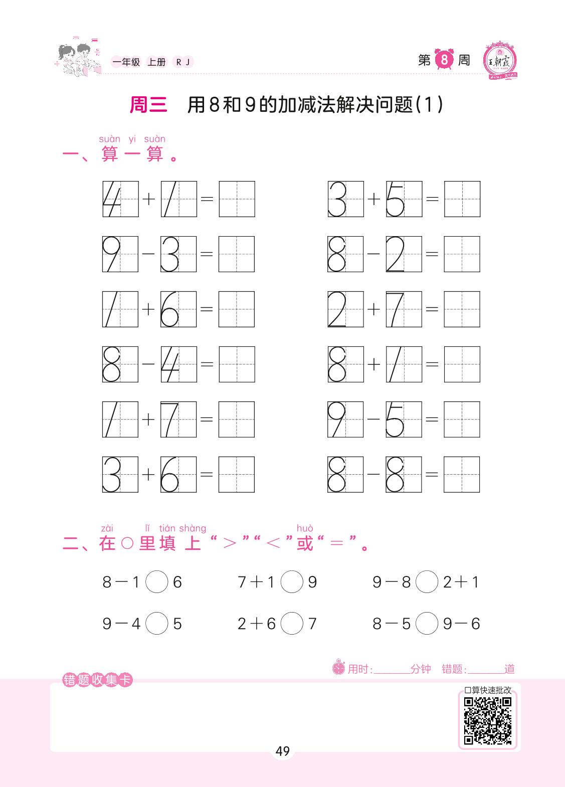 2022上册一年级数学人教版 第8周 周三