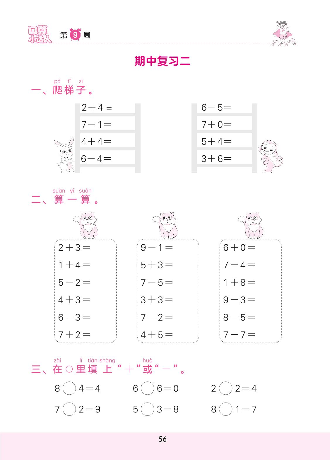 2022上册一年级数学人教版 第9周 期中复习二(计算专练)