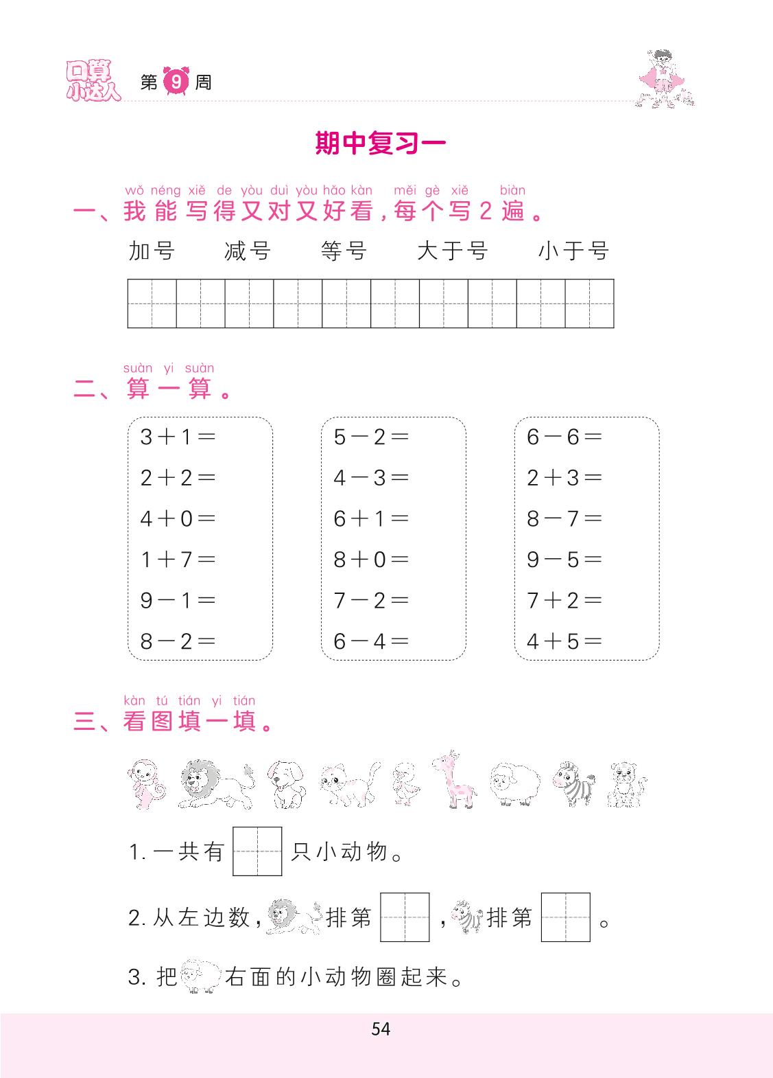 2022上册一年级数学人教版 第9周 期中复习一(计算专练)