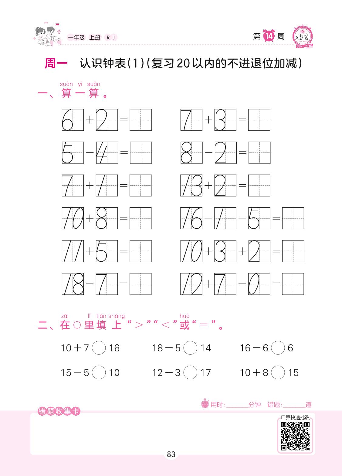 2022上册一年级数学人教版 第14周 周一