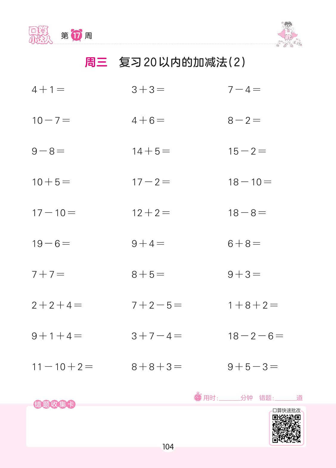 2022上册一年级数学人教版 第17周 周三