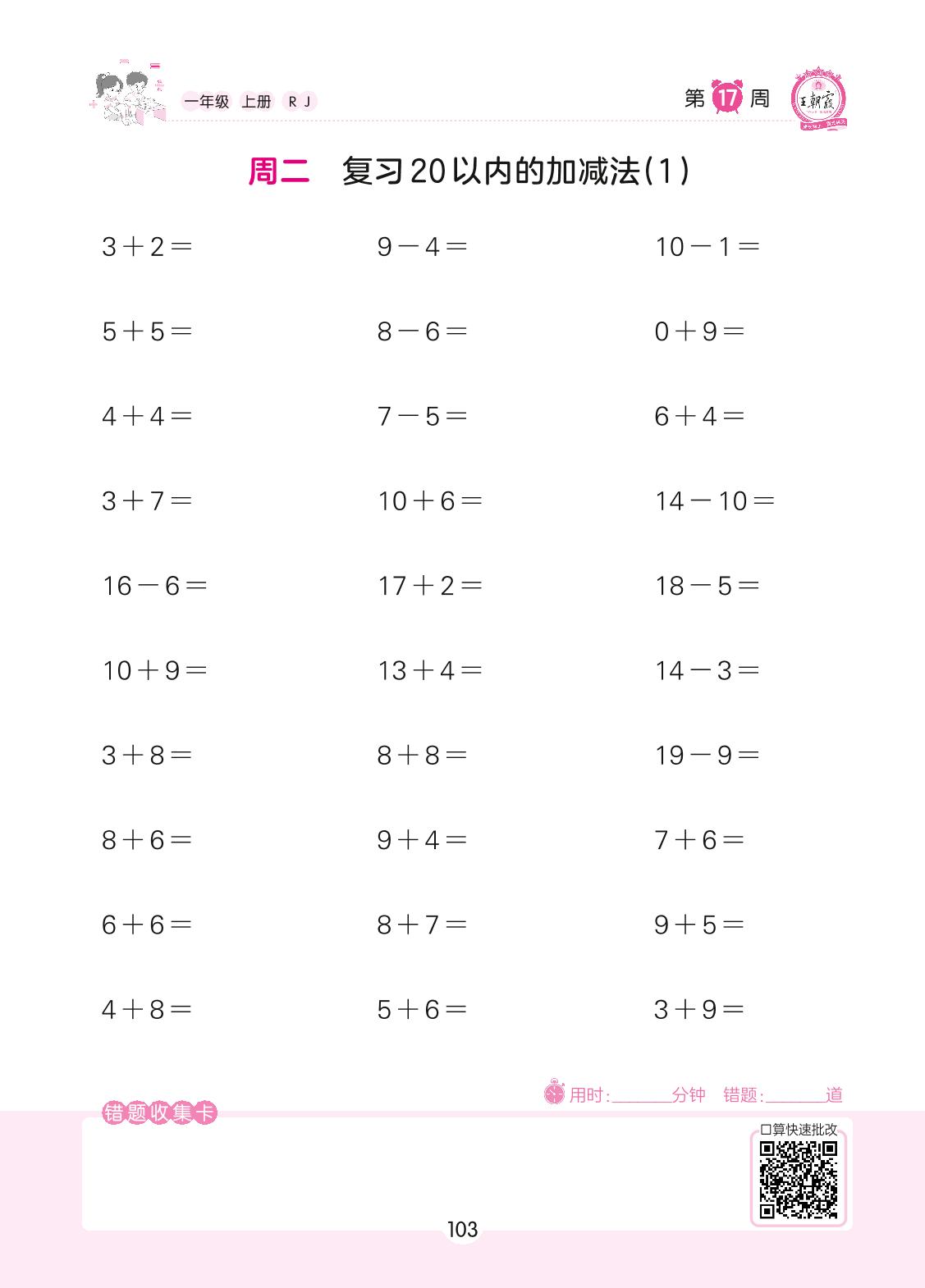 2022上册一年级数学人教版 第17周 周二