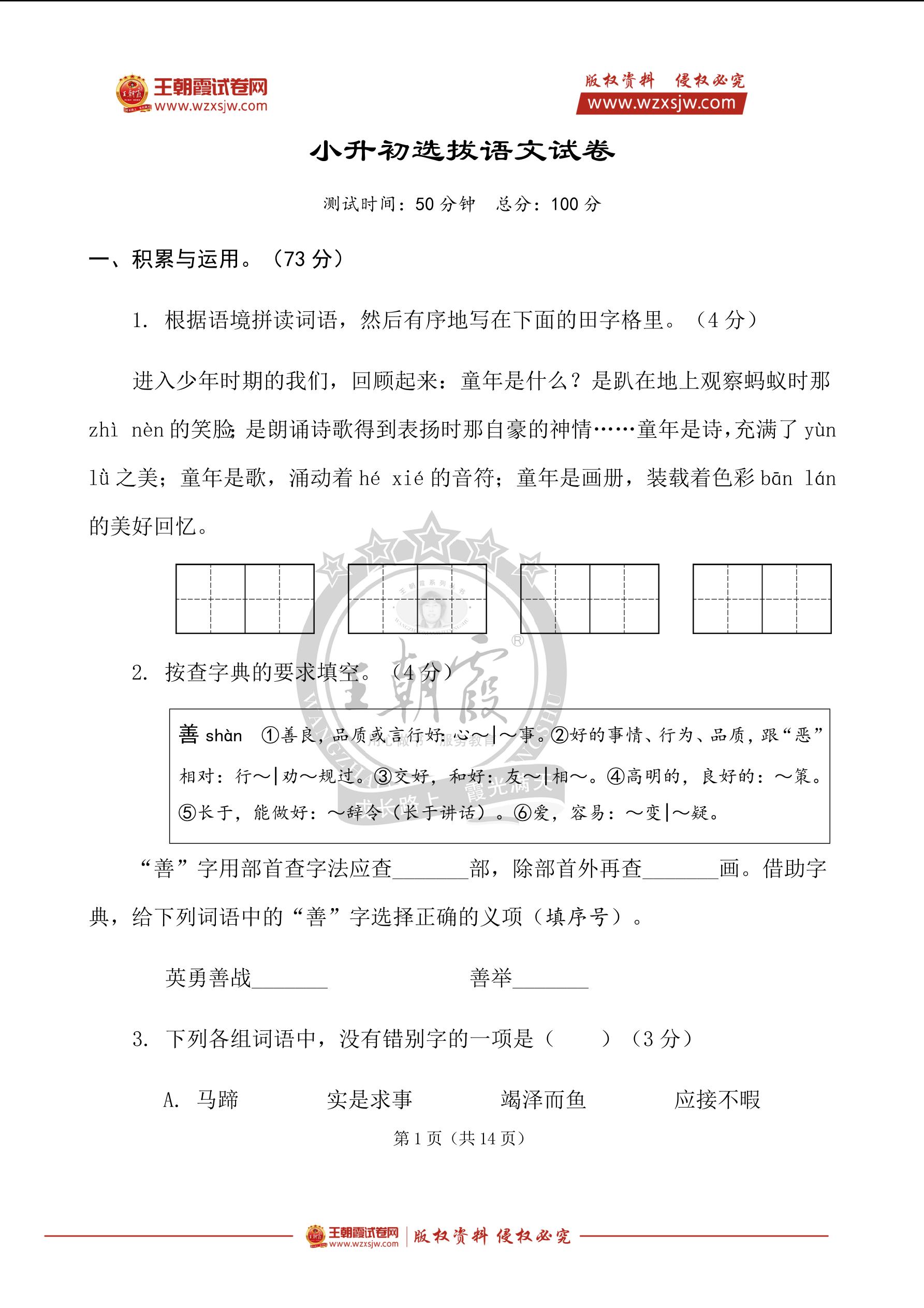 2022小升初选拔试卷—语文