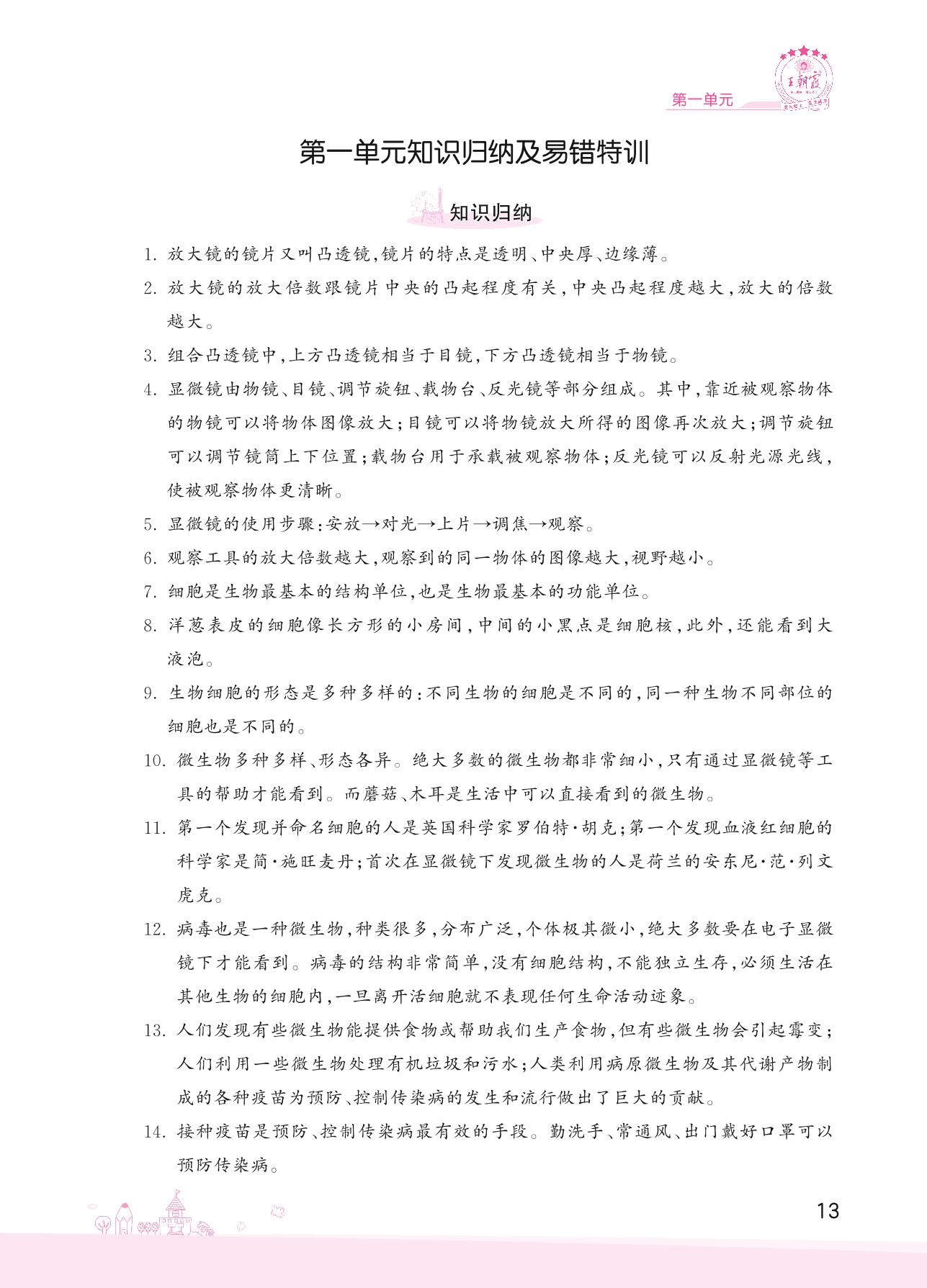 2022上册六年级科学教科版 第一单元知识归纳及易错特训