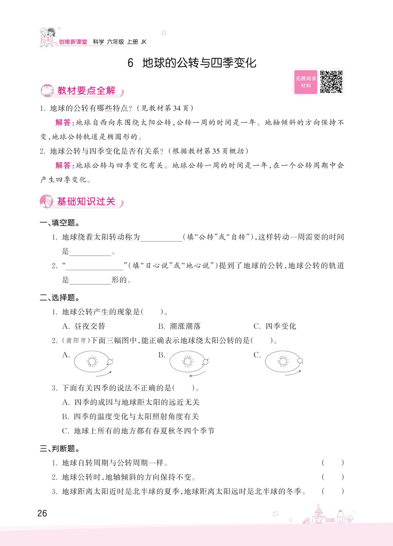 2022上册六年级科学教科版 第二单元 地球的运动——6 地球的公转与四季变化