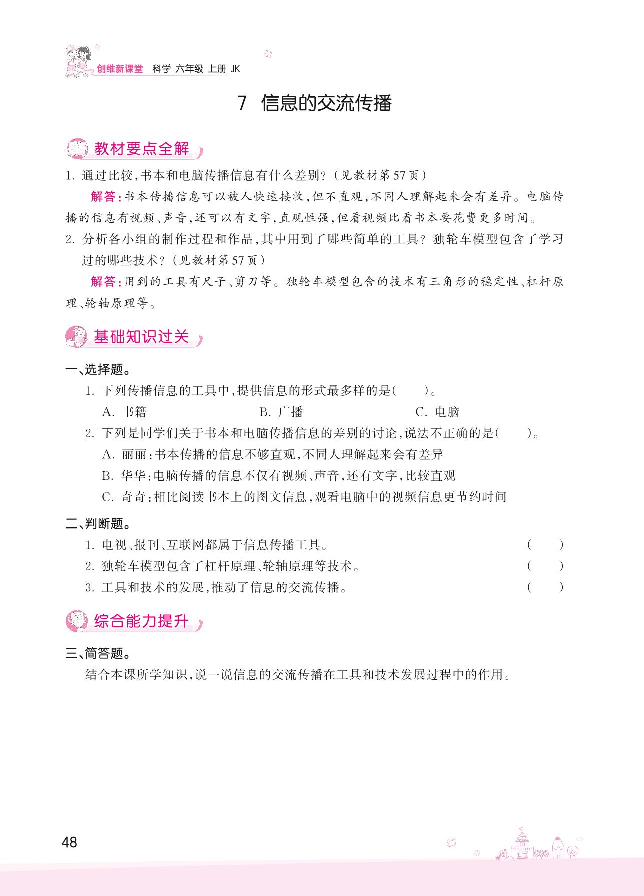 2022上册六年级科学教科版 第三单元 工具与技术——7 信息的交流传播