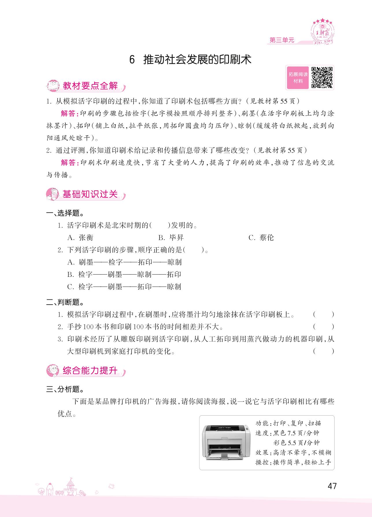 2022上册六年级科学教科版 第三单元 工具与技术——6 推动社会发展的印刷术
