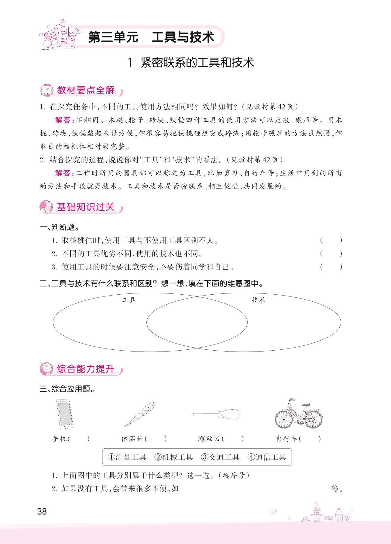 2022上册六年级科学教科版 第三单元 工具与技术——1 紧密联系的工具和技术