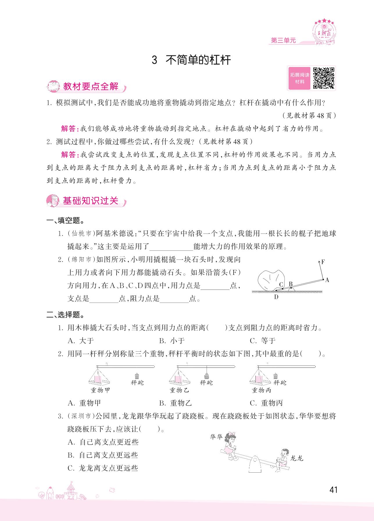2022上册六年级科学教科版 第三单元 工具与技术——3 不简单的杠杆
