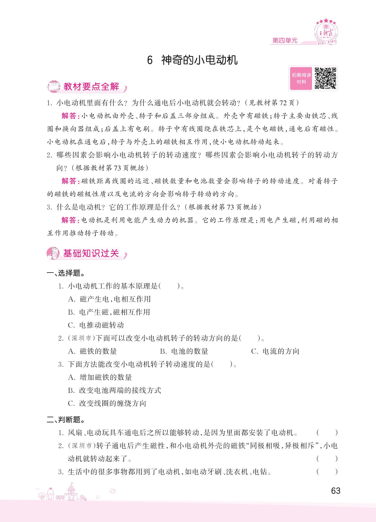 2022上册六年级科学教科版 第四单元 能量——6 神奇的小电动机