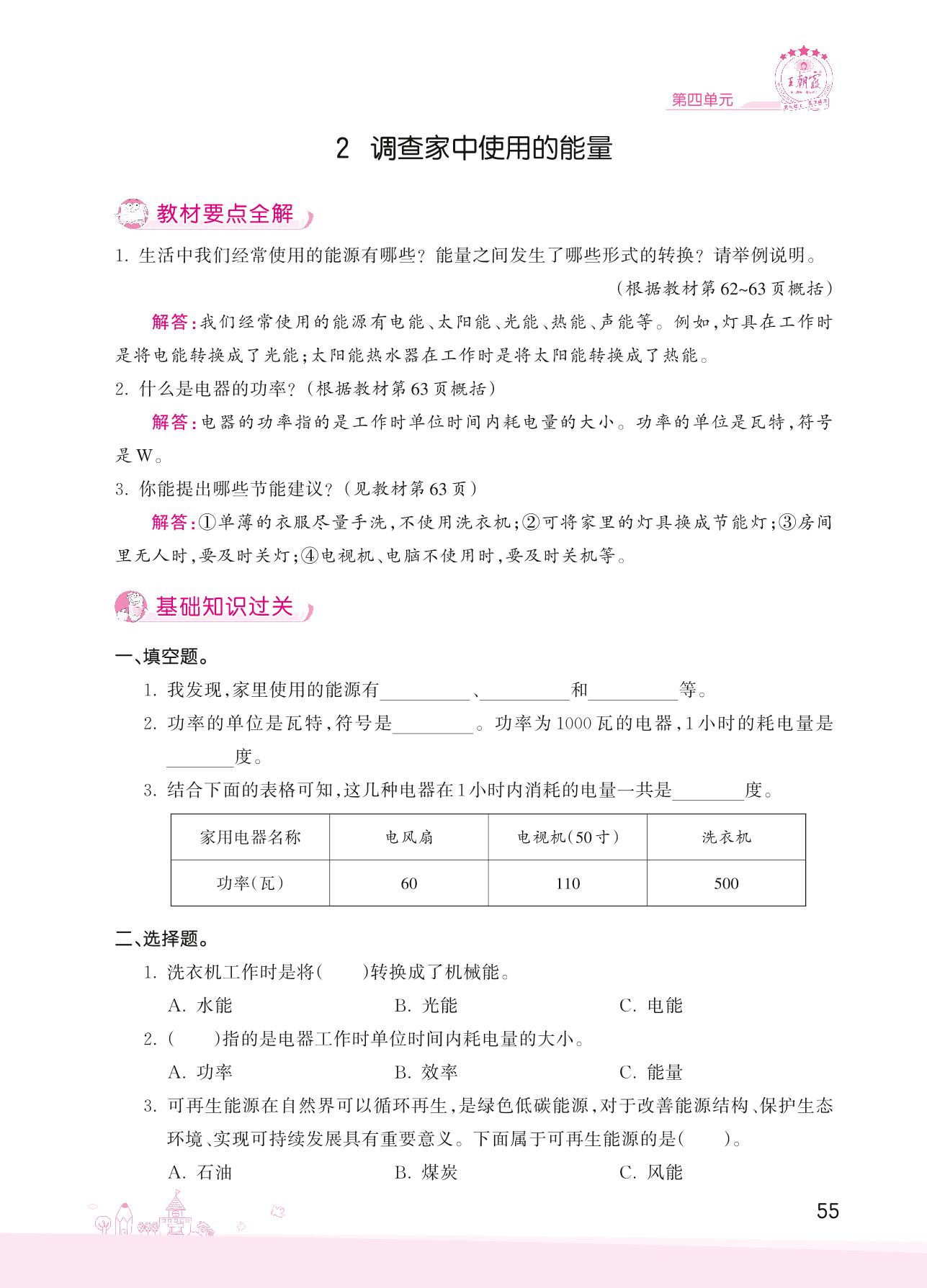 2022上册六年级科学教科版 第四单元 能量——2 调查家中使用的能量