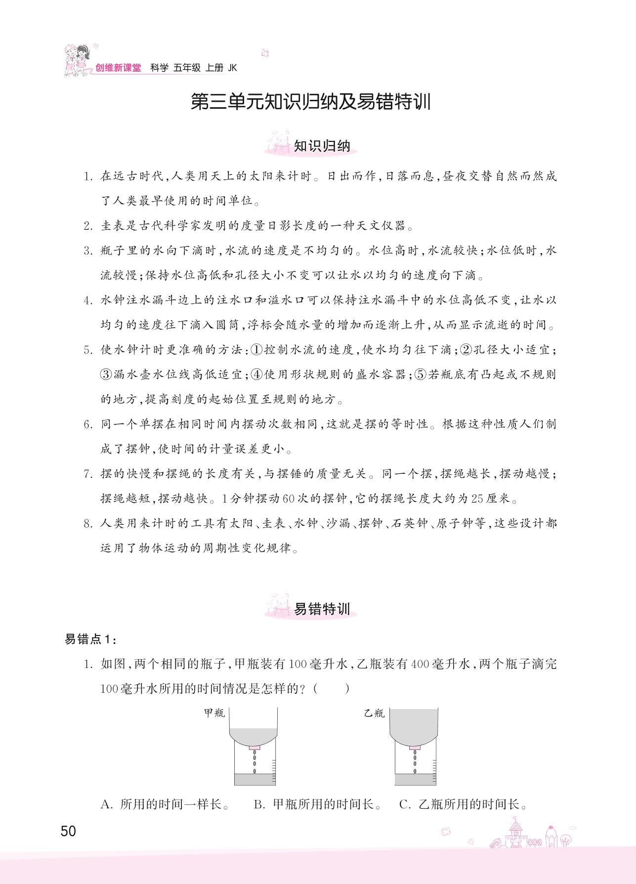 2022上册五年级科学教科版 第三单元知识归纳及易错特训