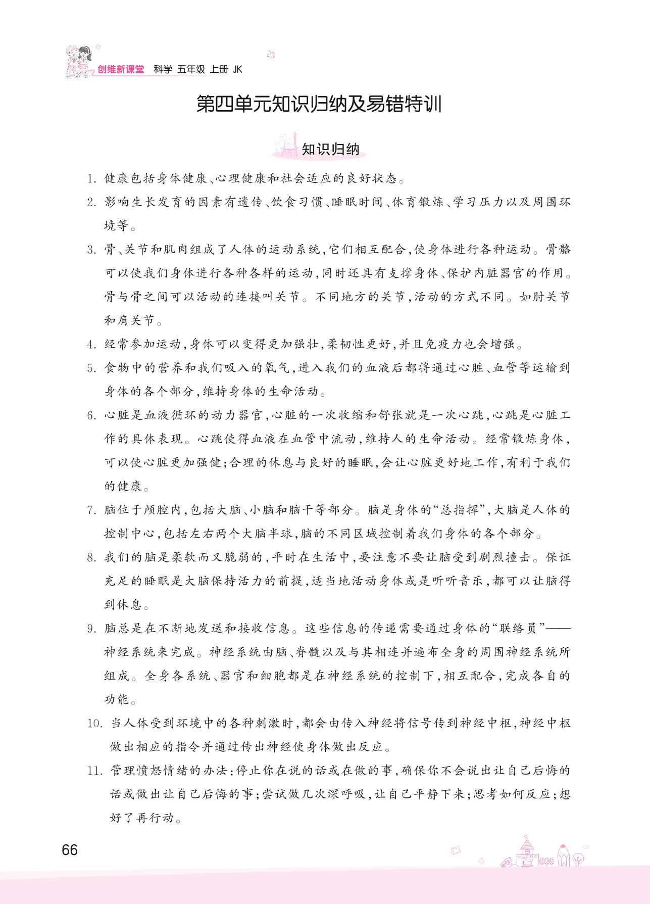 2022上册五年级科学教科版 第四单元知识归纳及易错特训