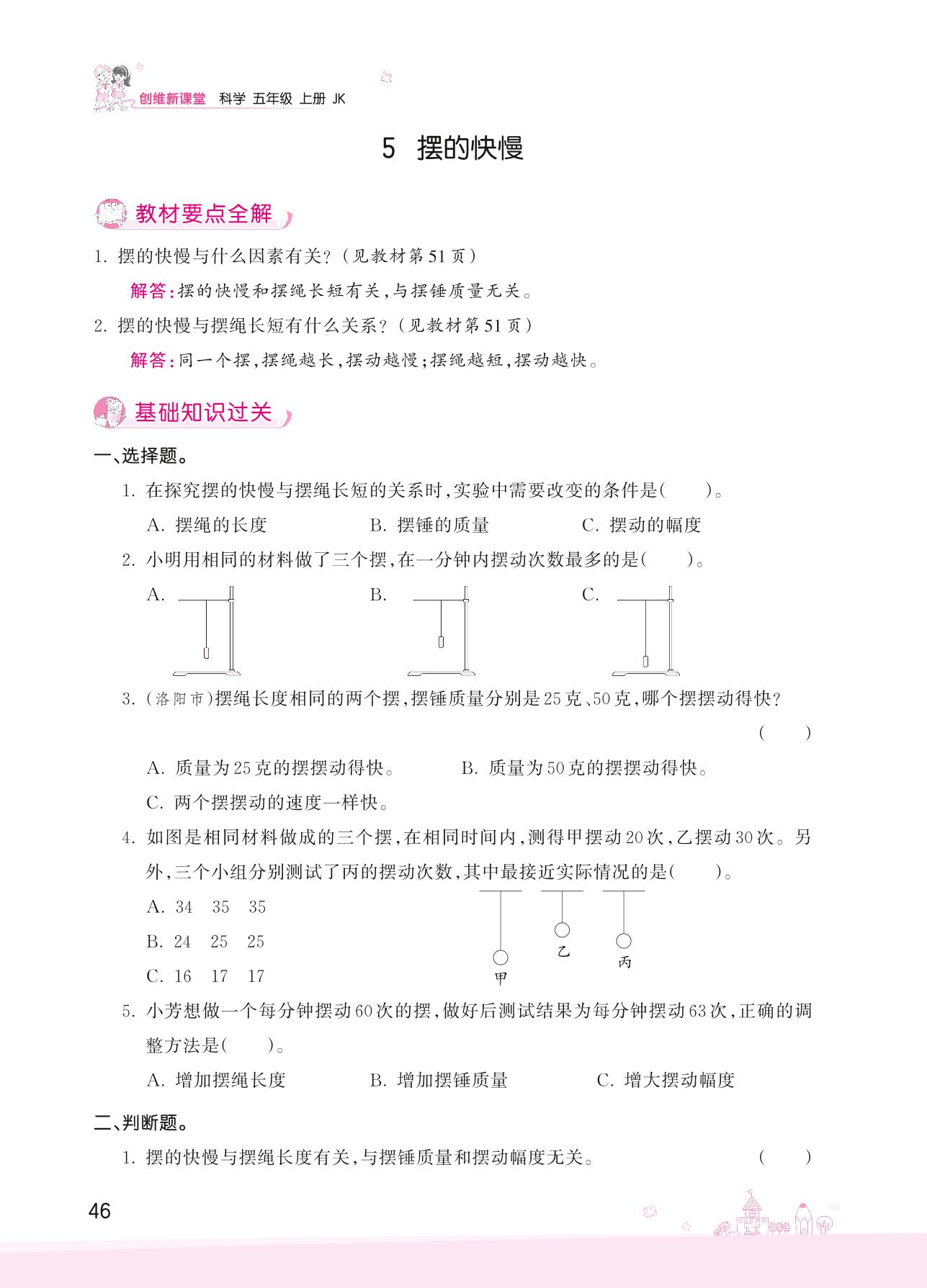 2022上册五年级科学教科版 第三单元 计量时间——5 摆的快慢