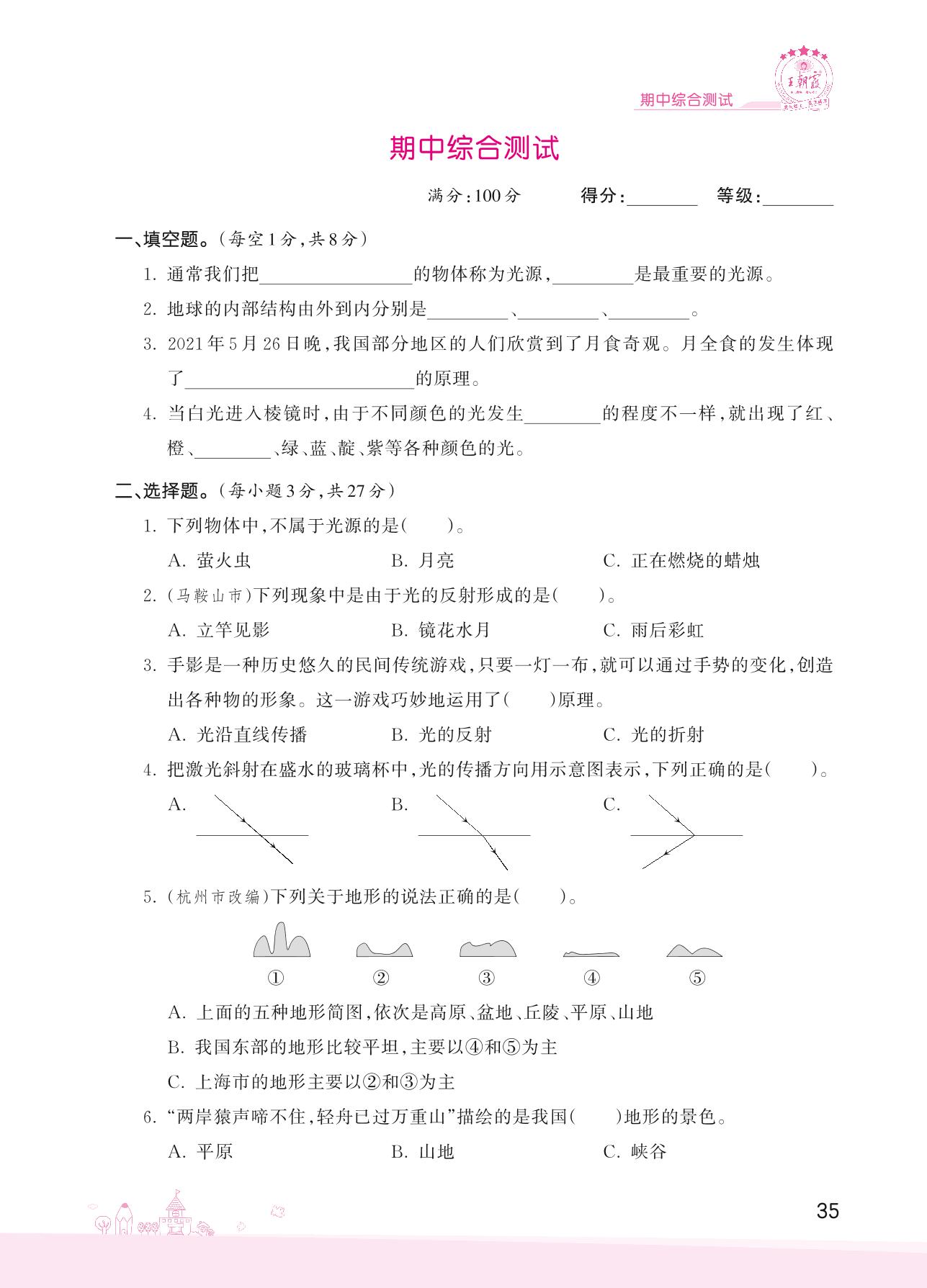 2022上册五年级科学教科版 期中综合测试