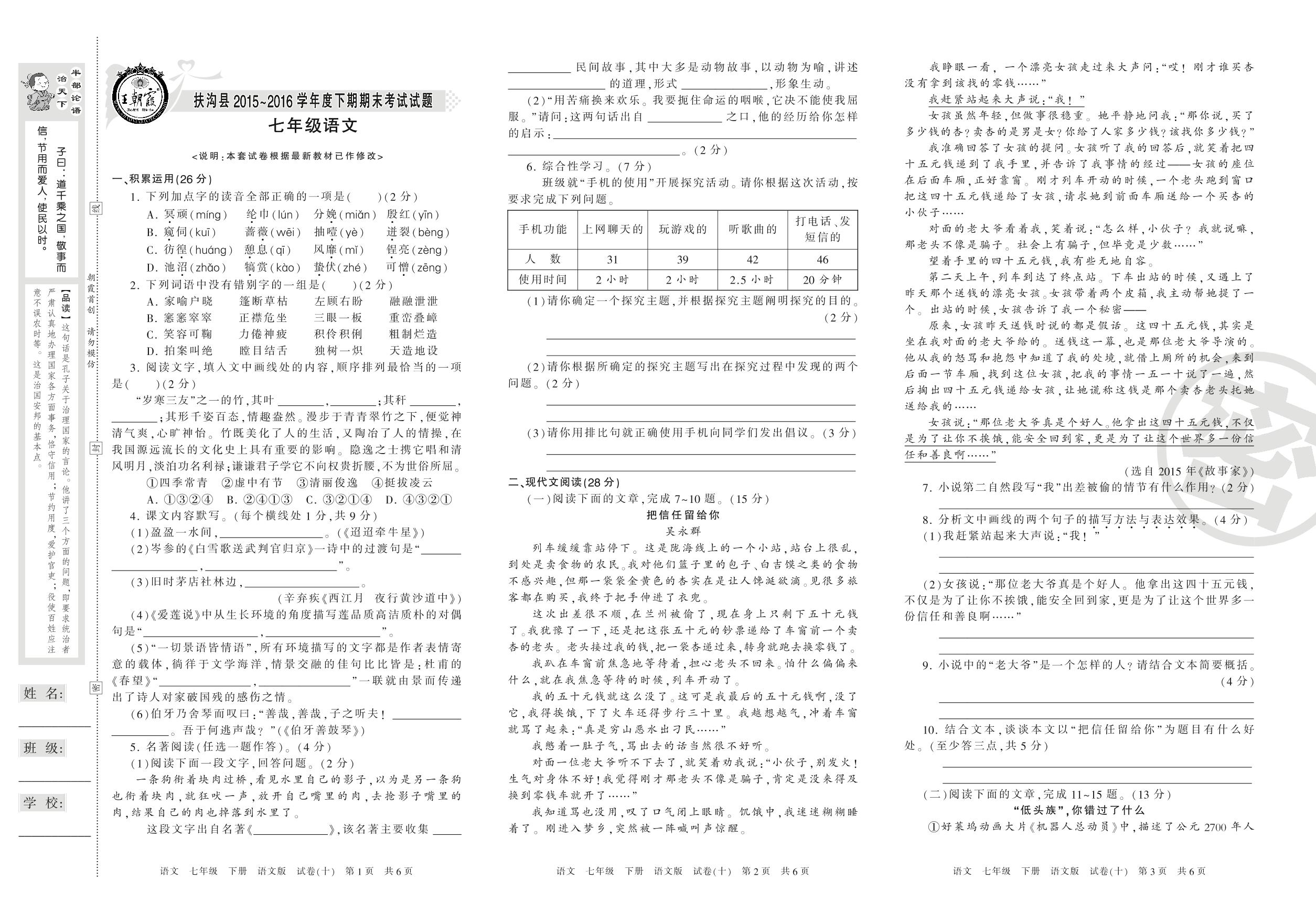 2015-2016学年第二学期周口市扶沟县七年级语文试卷(语文版)_R21080252313【10】