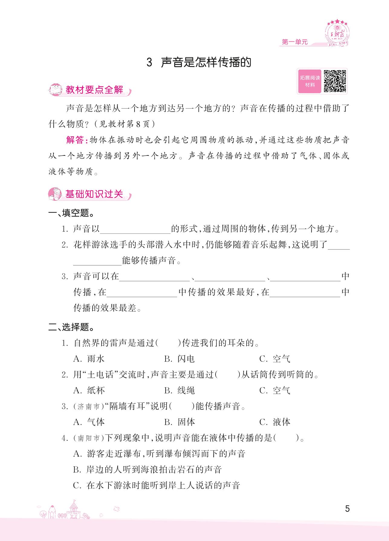 2022上册四年级科学教科版 第一单元 声音——3 声音是怎样传播的