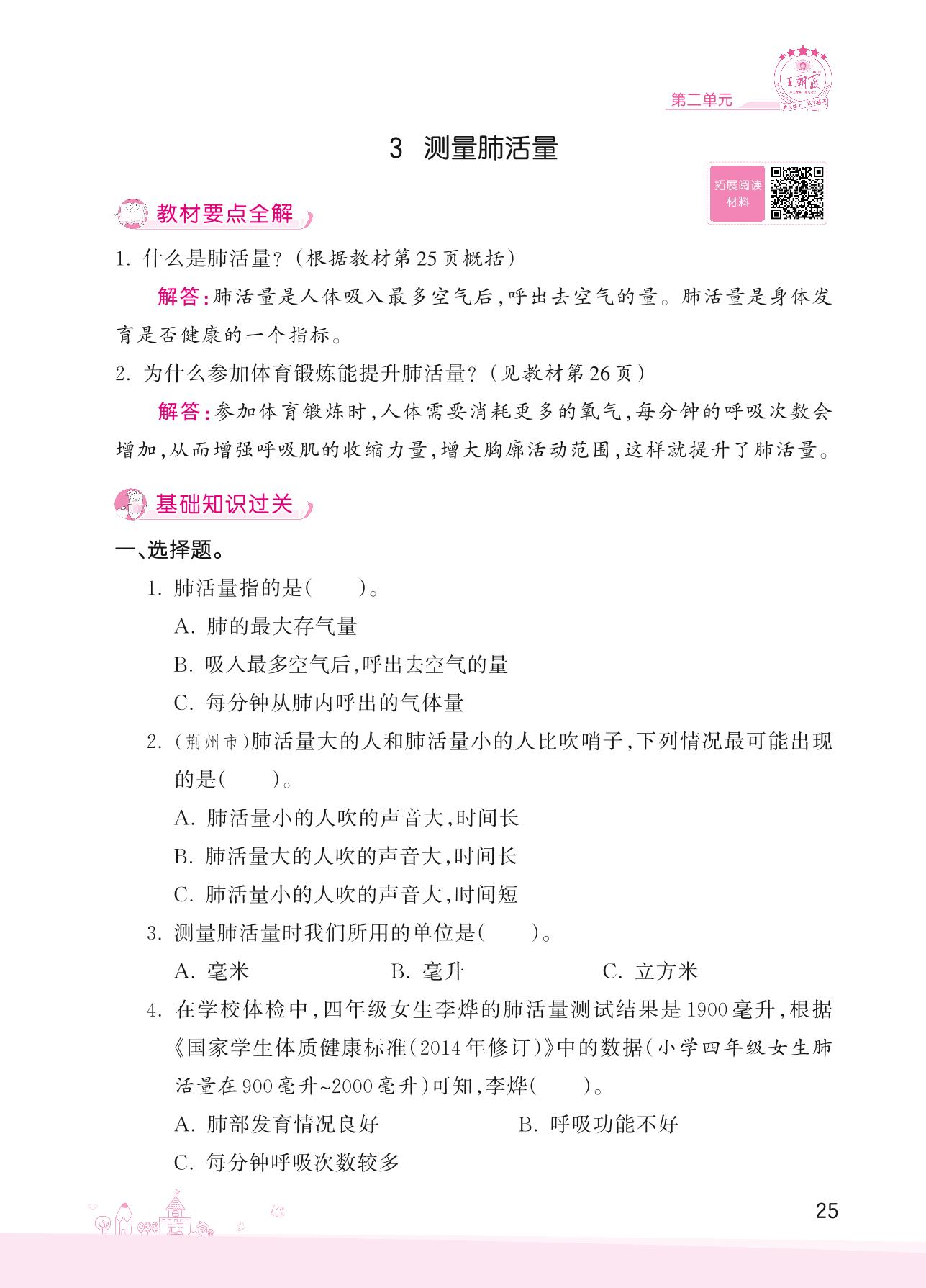 2022上册四年级科学教科版 第二单元 呼吸与消化——3 测量肺活量