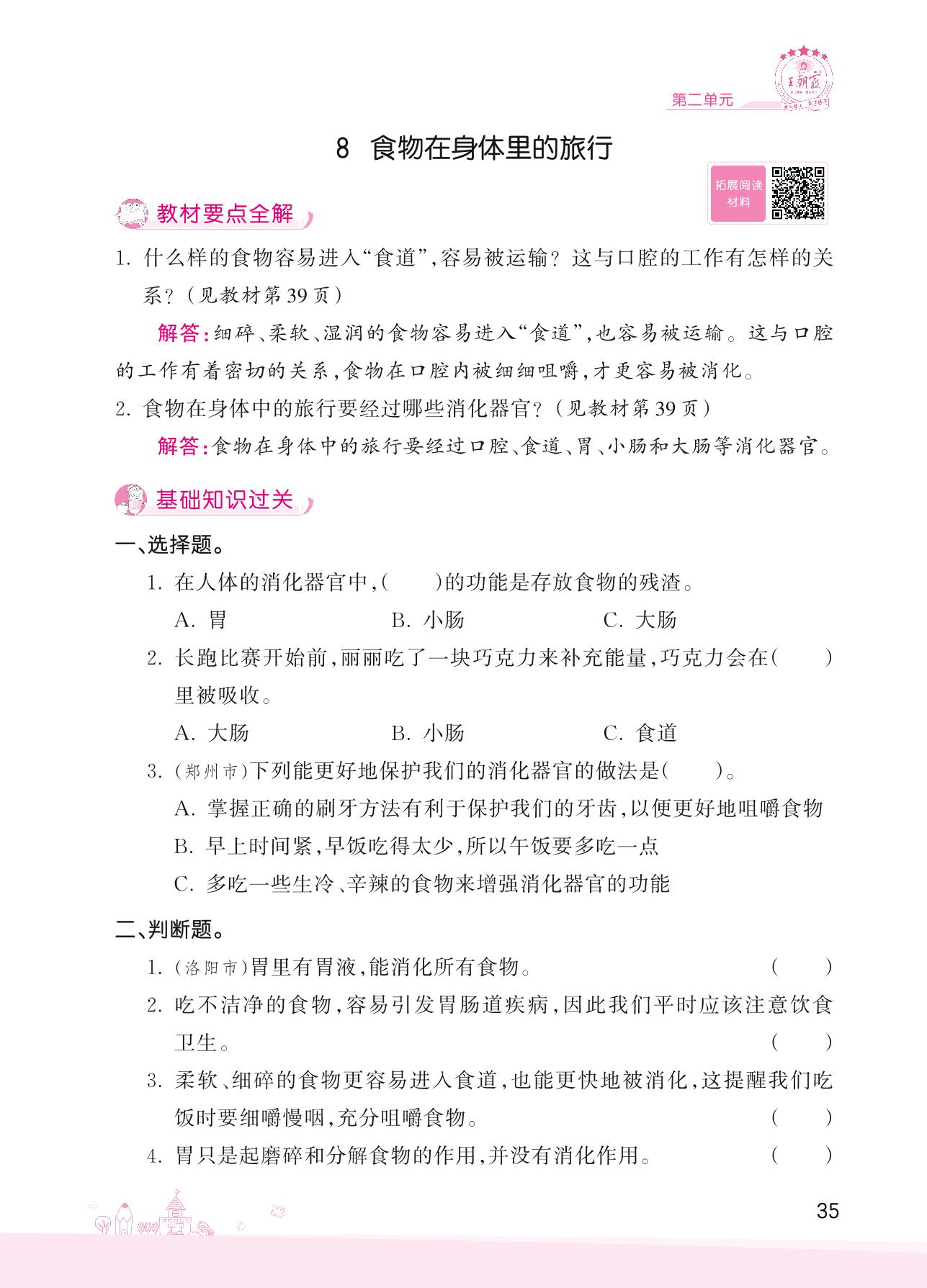 2022上册四年级科学教科版 第二单元 呼吸与消化——8 食物在身体里的旅行
