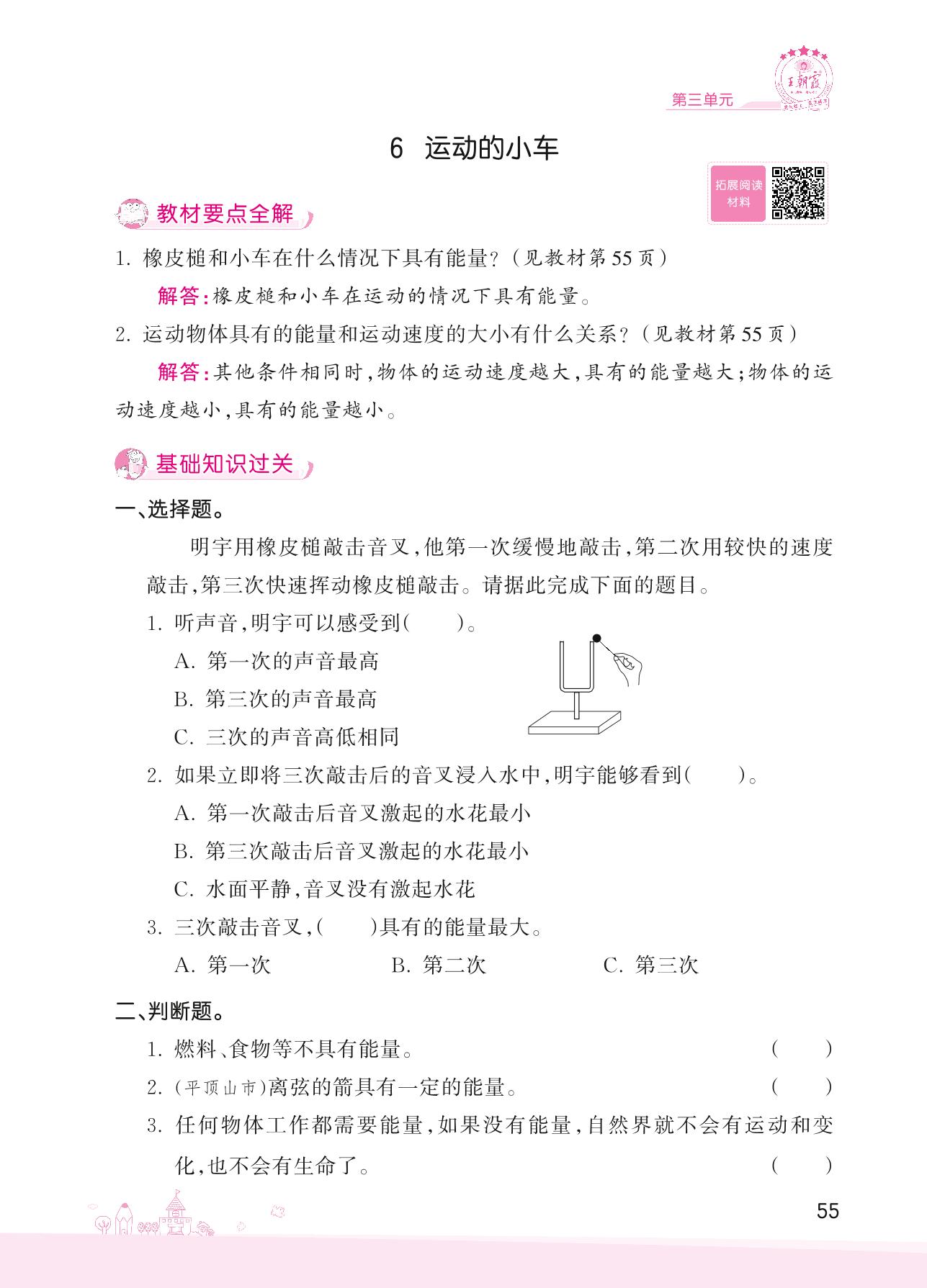2022上册四年级科学教科版 第三单元 运动和力——6 运动的小车