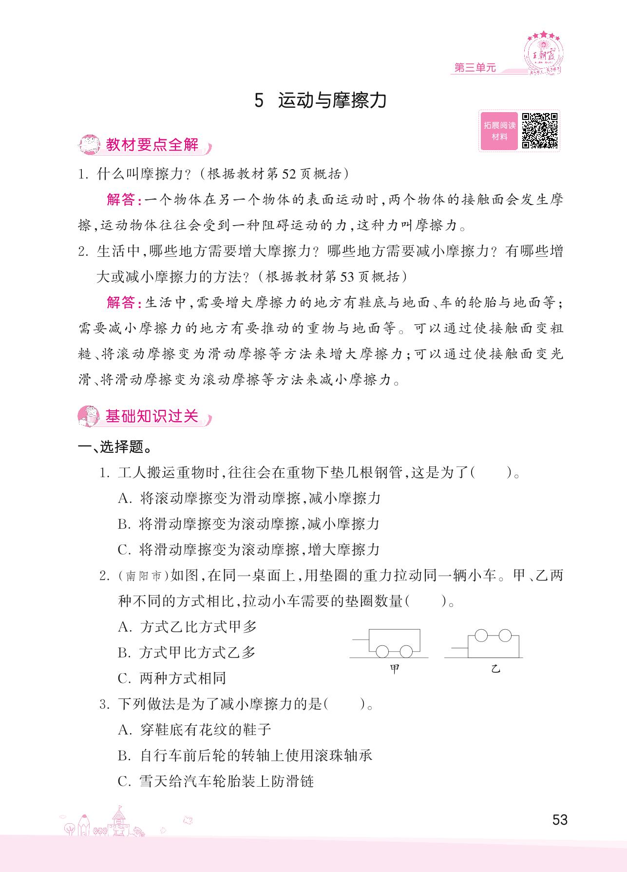 2022上册四年级科学教科版 第三单元 运动和力——5 运动与摩擦力