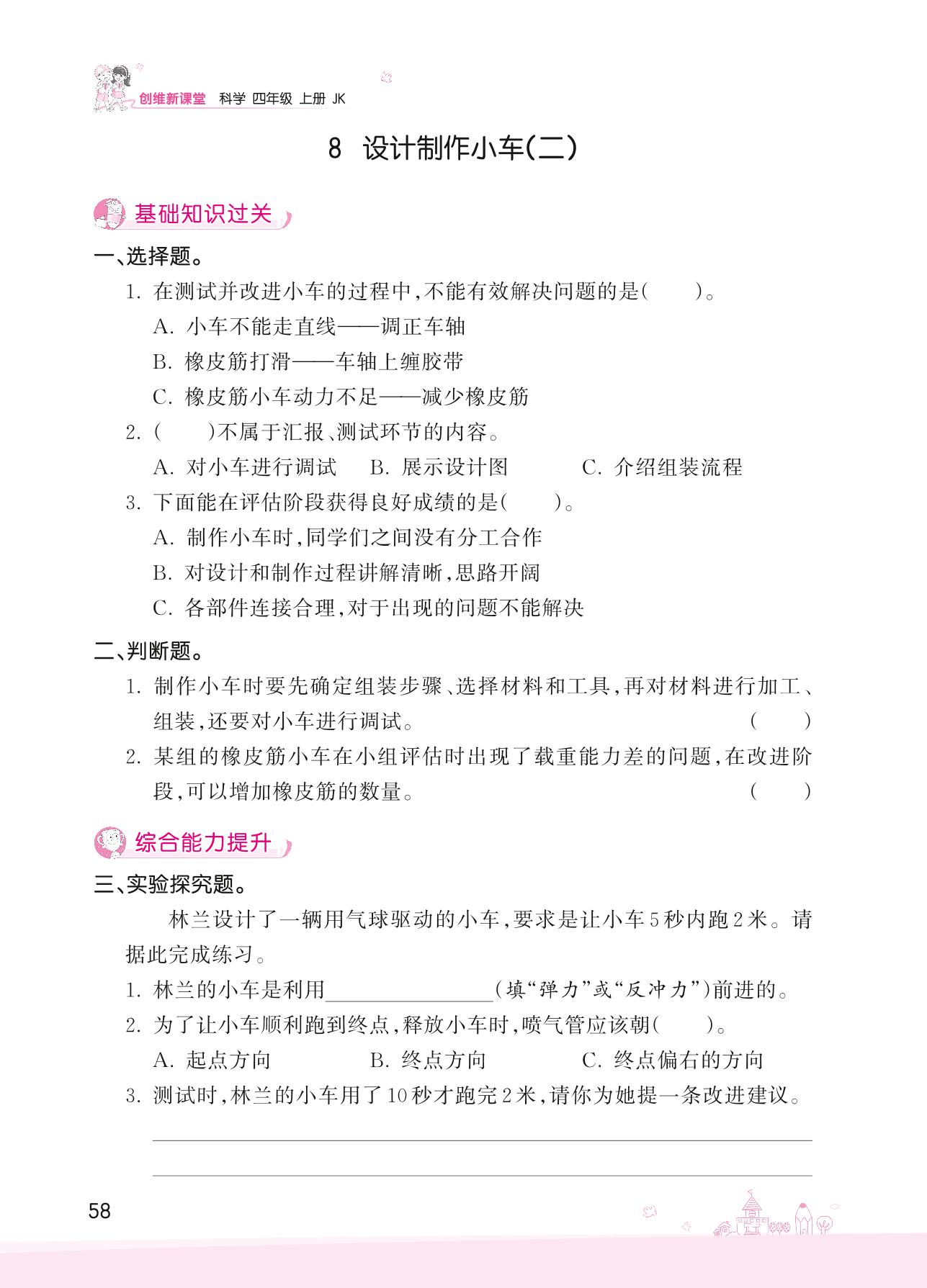 2022上册四年级科学教科版 第三单元 运动和力——8 设计制作小车(二)