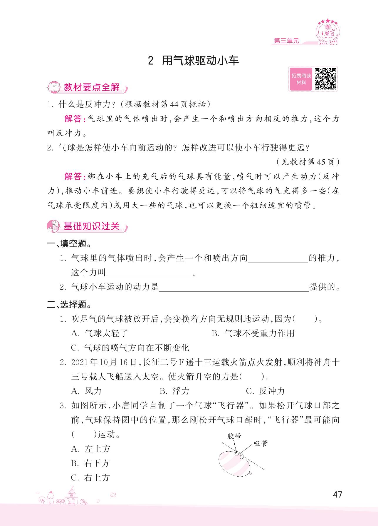 2022上册四年级科学教科版 第三单元 运动和力——2 用气球驱动小车