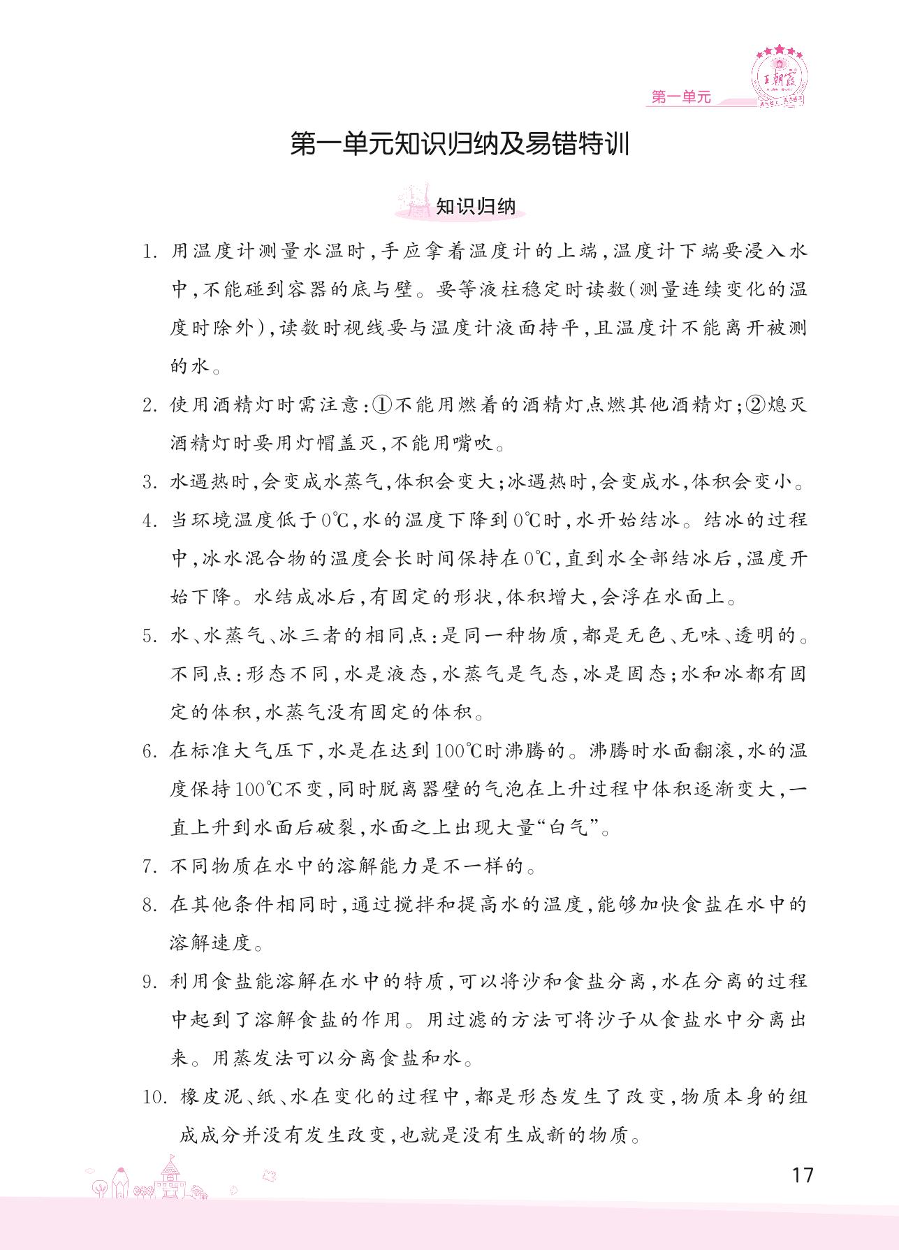 2022上册三年级科学教科版 第一单元知识归纳及易错特训