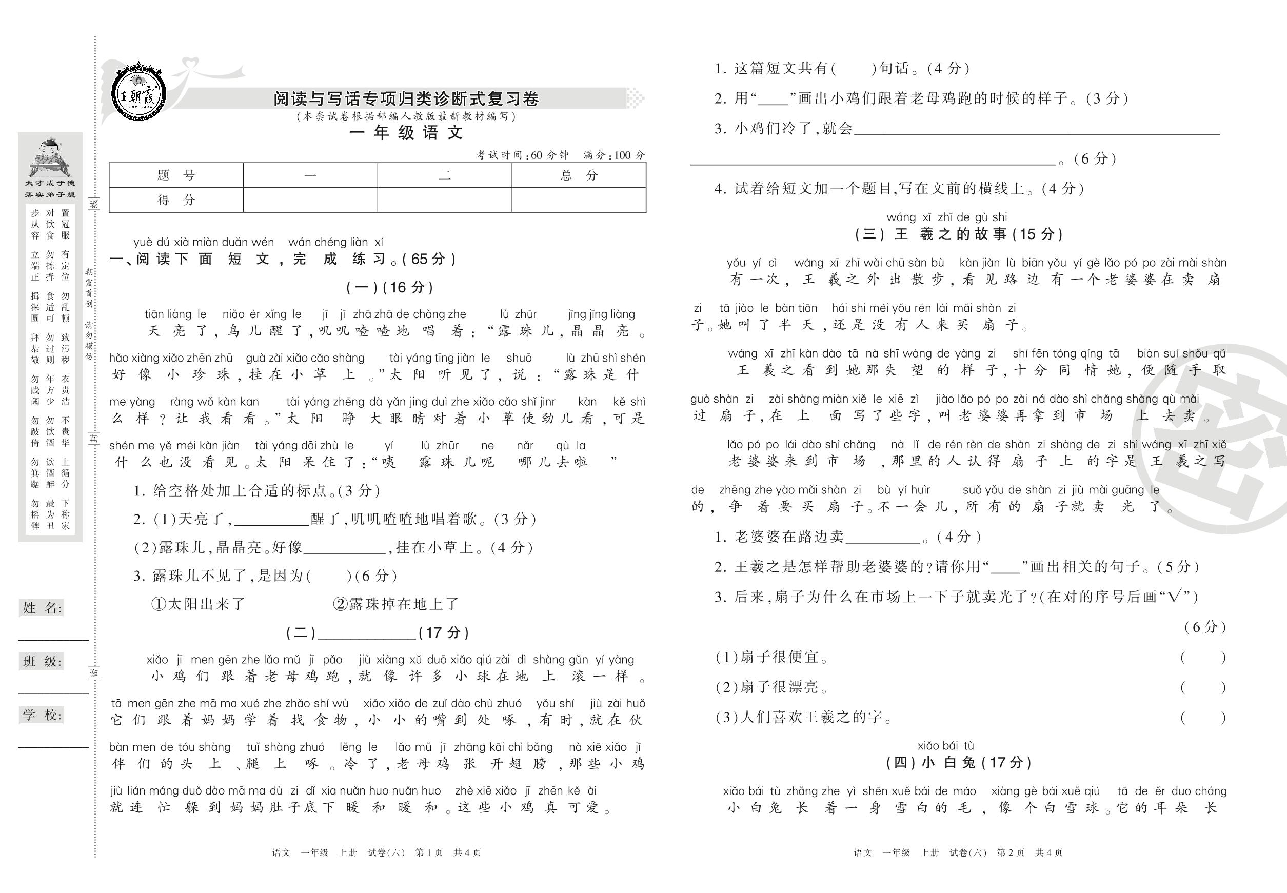 王朝霞期末专项卷一年级上册语文(人教版)_R210731184413【6】