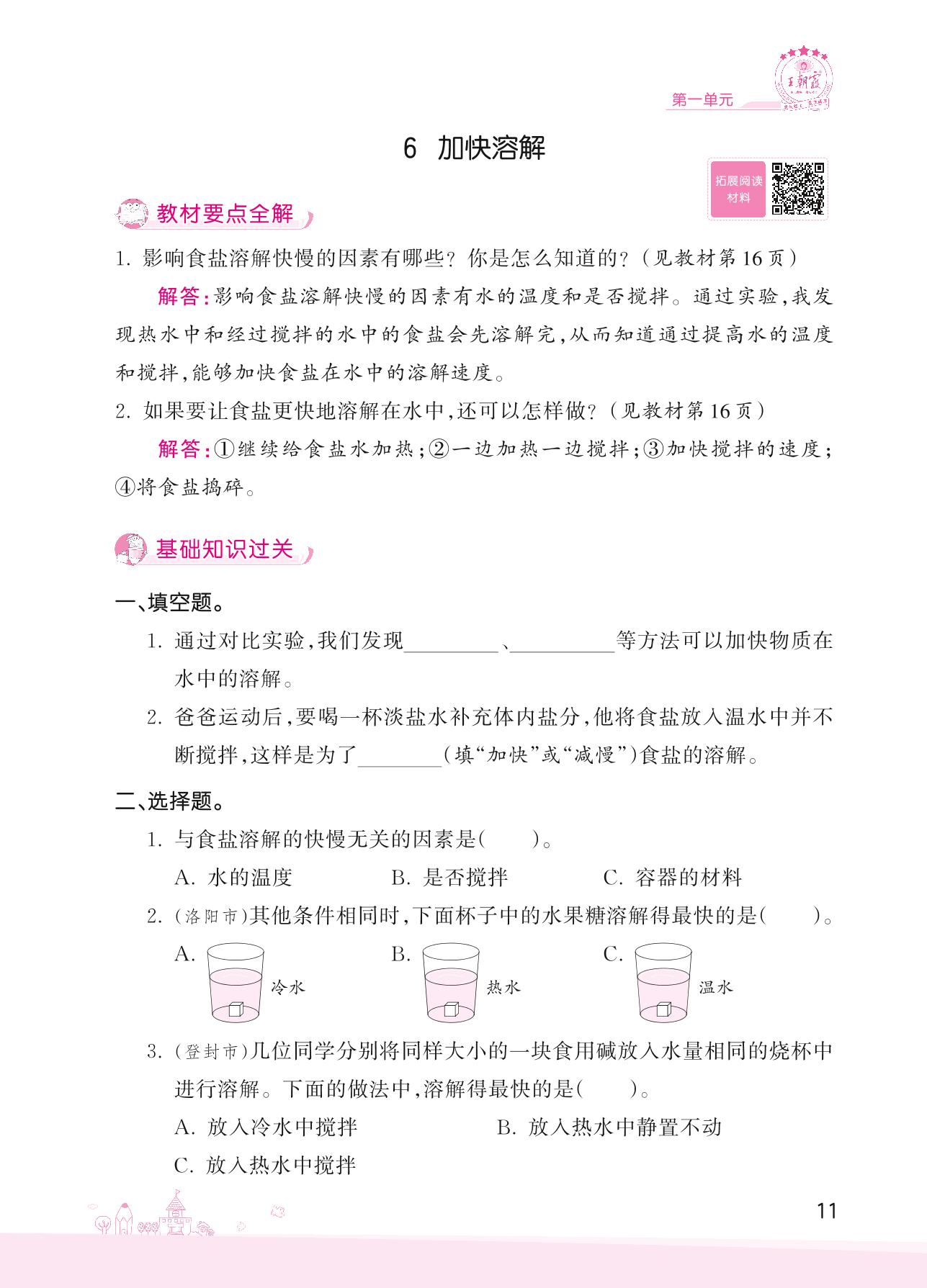 2022上册三年级科学教科版 第一单元 水——6 加快溶解