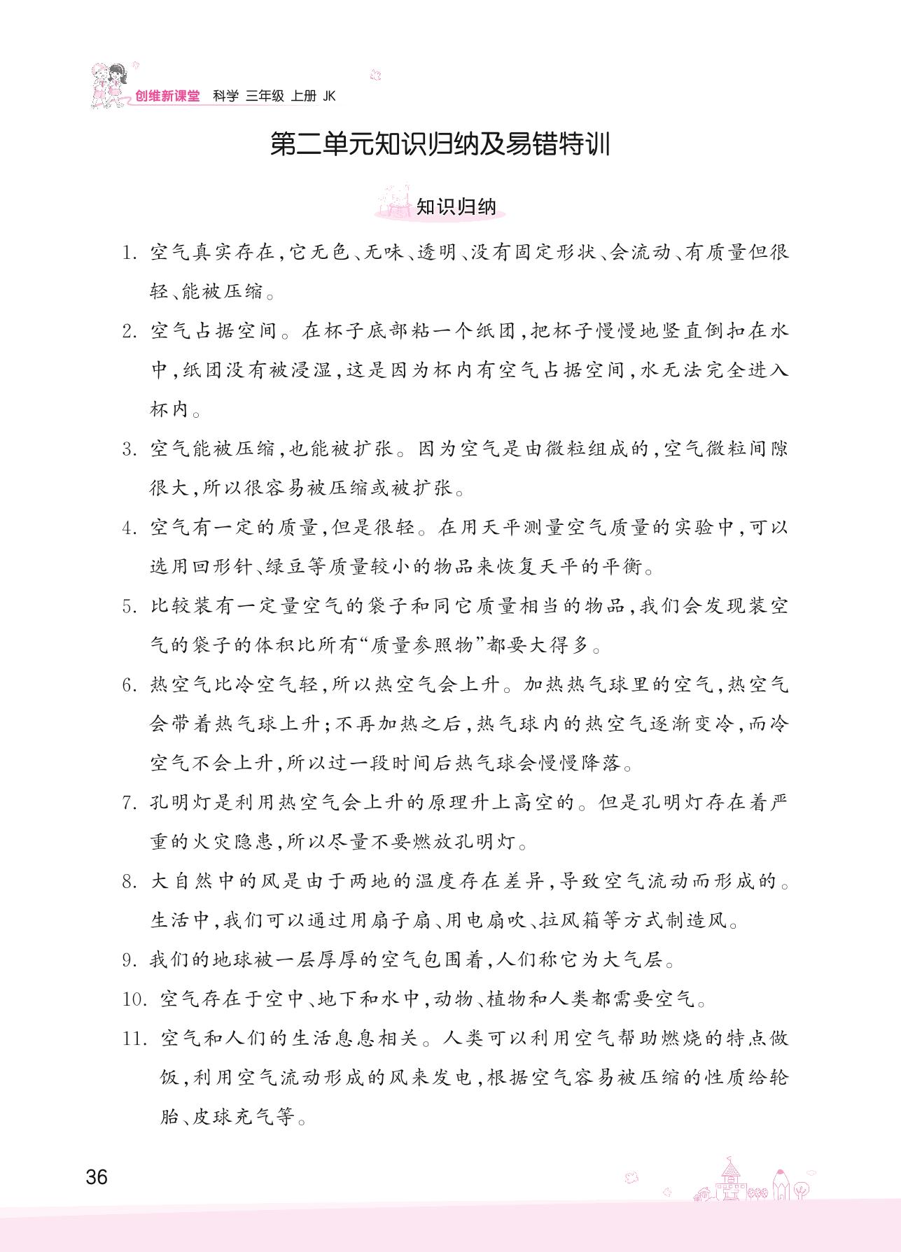 2022上册三年级科学教科版 第二单元知识归纳及易错特训