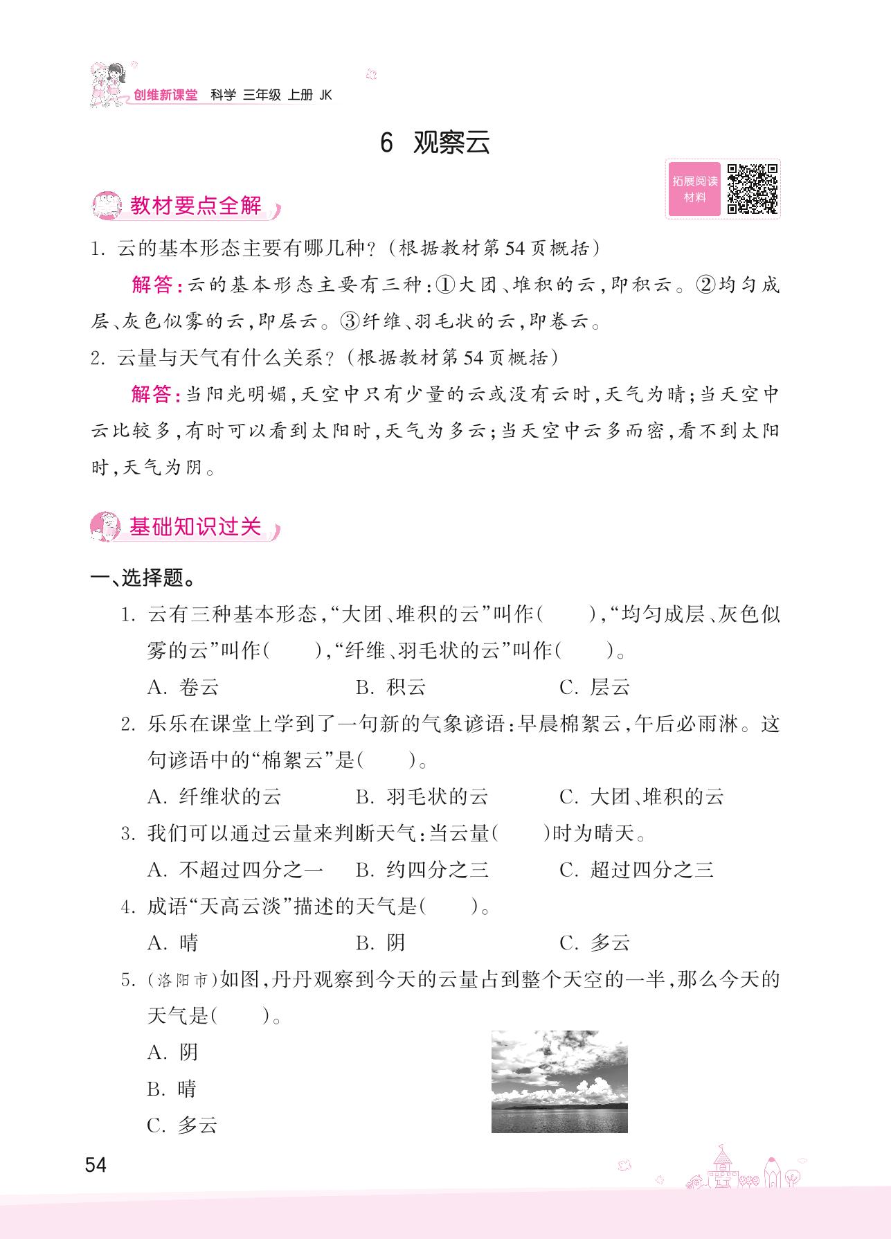 2022上册三年级科学教科版 第三单元 天气——6 观察云