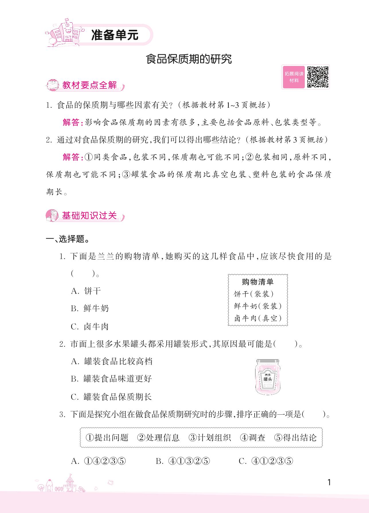 2022上册四年级科学大象版 准备单元——食品保质期的研究