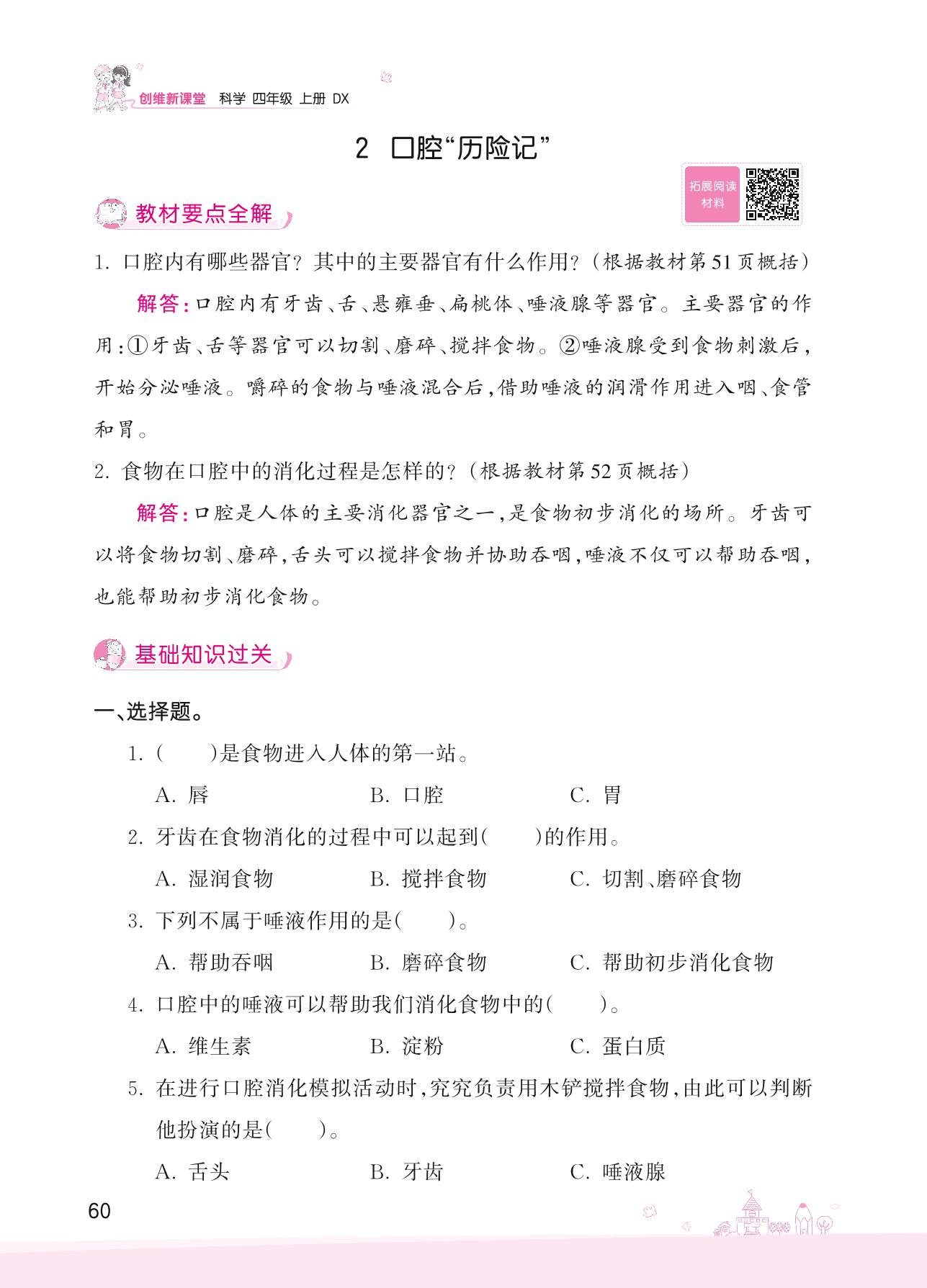 2022上册四年级科学大象版 第五单元 人体的消化器官——2 口腔“历险记”