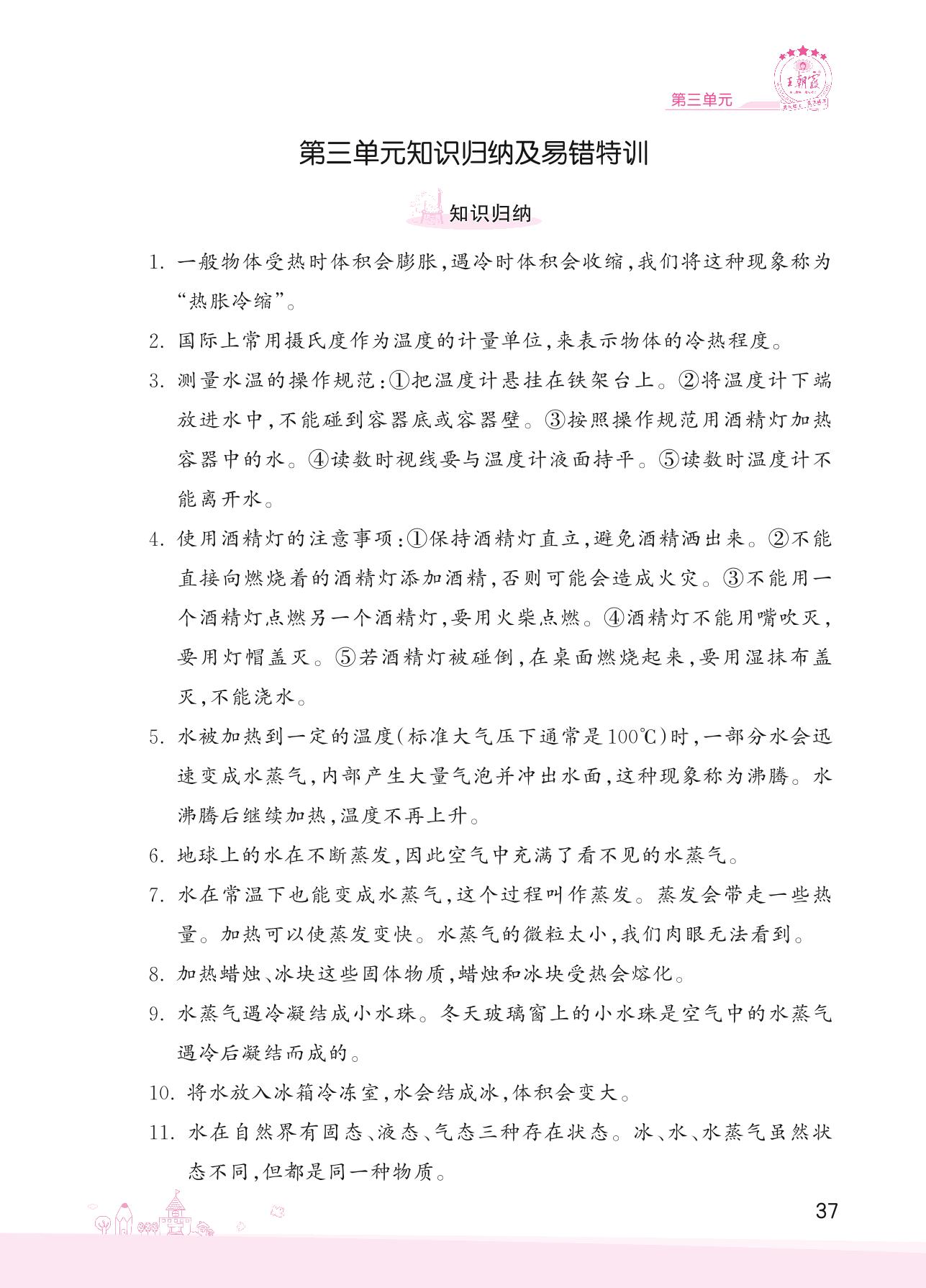 2022上册四年级科学大象版 第三单元知识归纳及易错特训