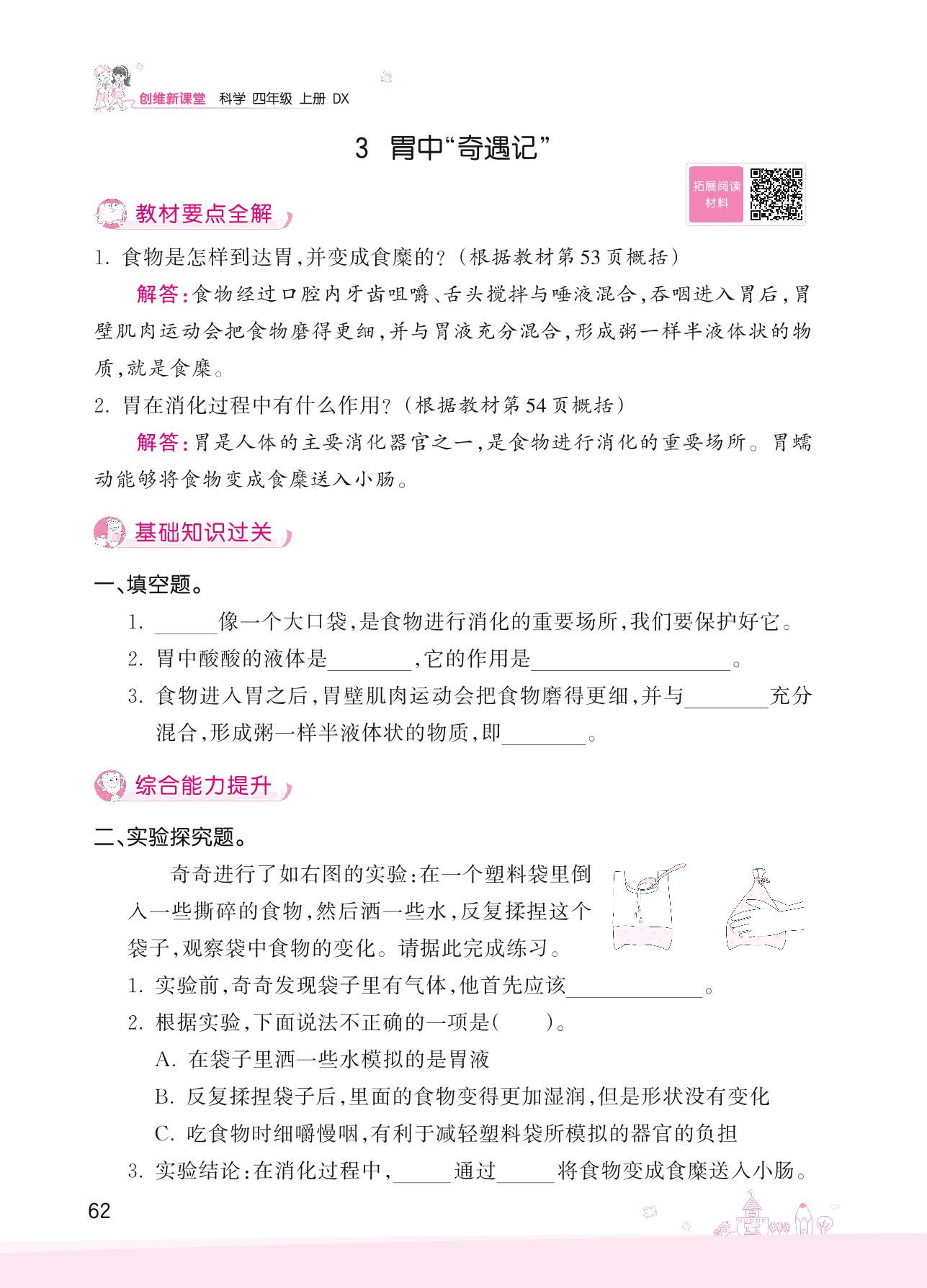 2022上册四年级科学大象版 第五单元 人体的消化器官——3 胃中“奇遇记”