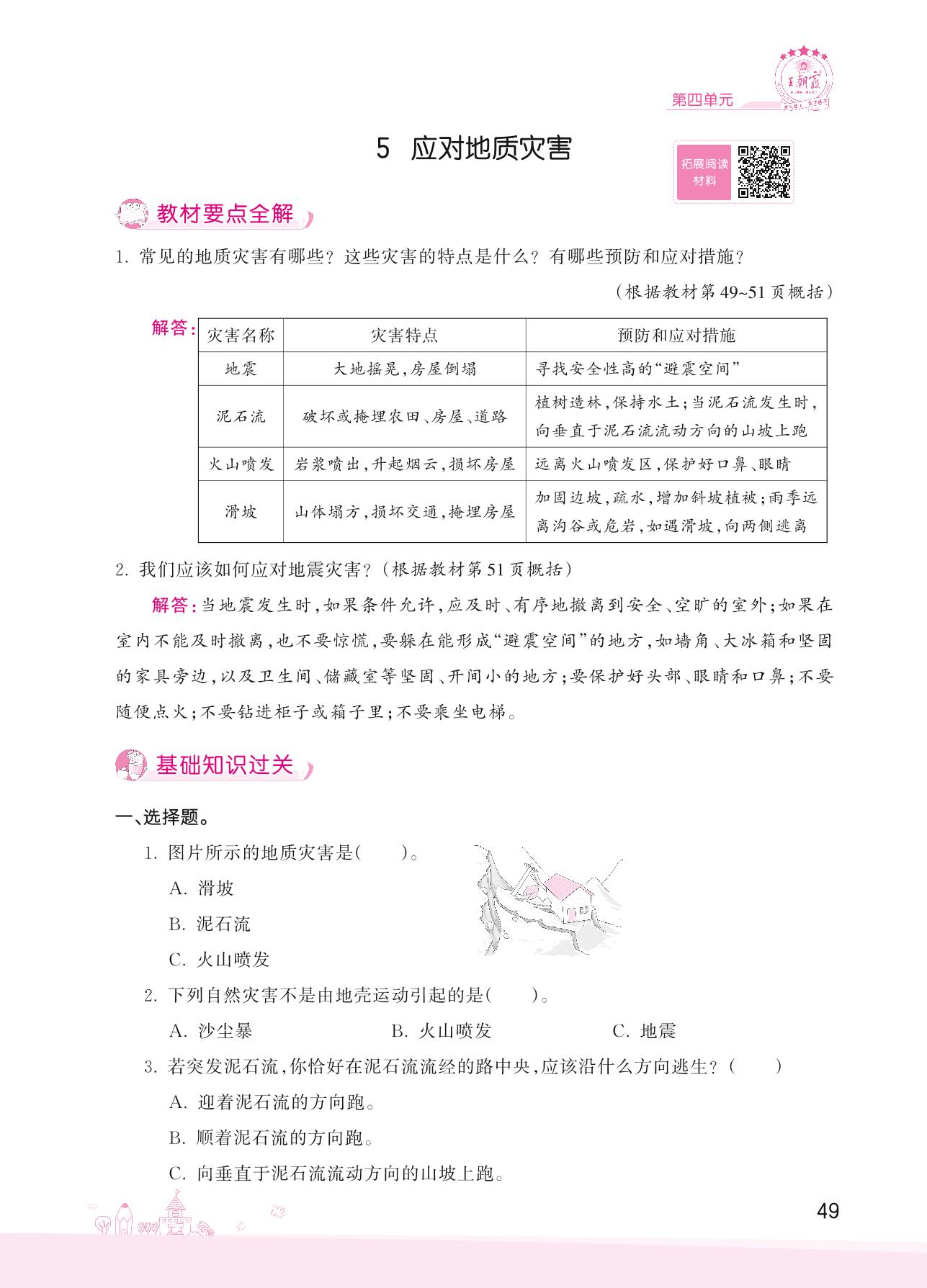 2022上册五年级科学大象版 第四单元 地壳——5 应对地质灾害