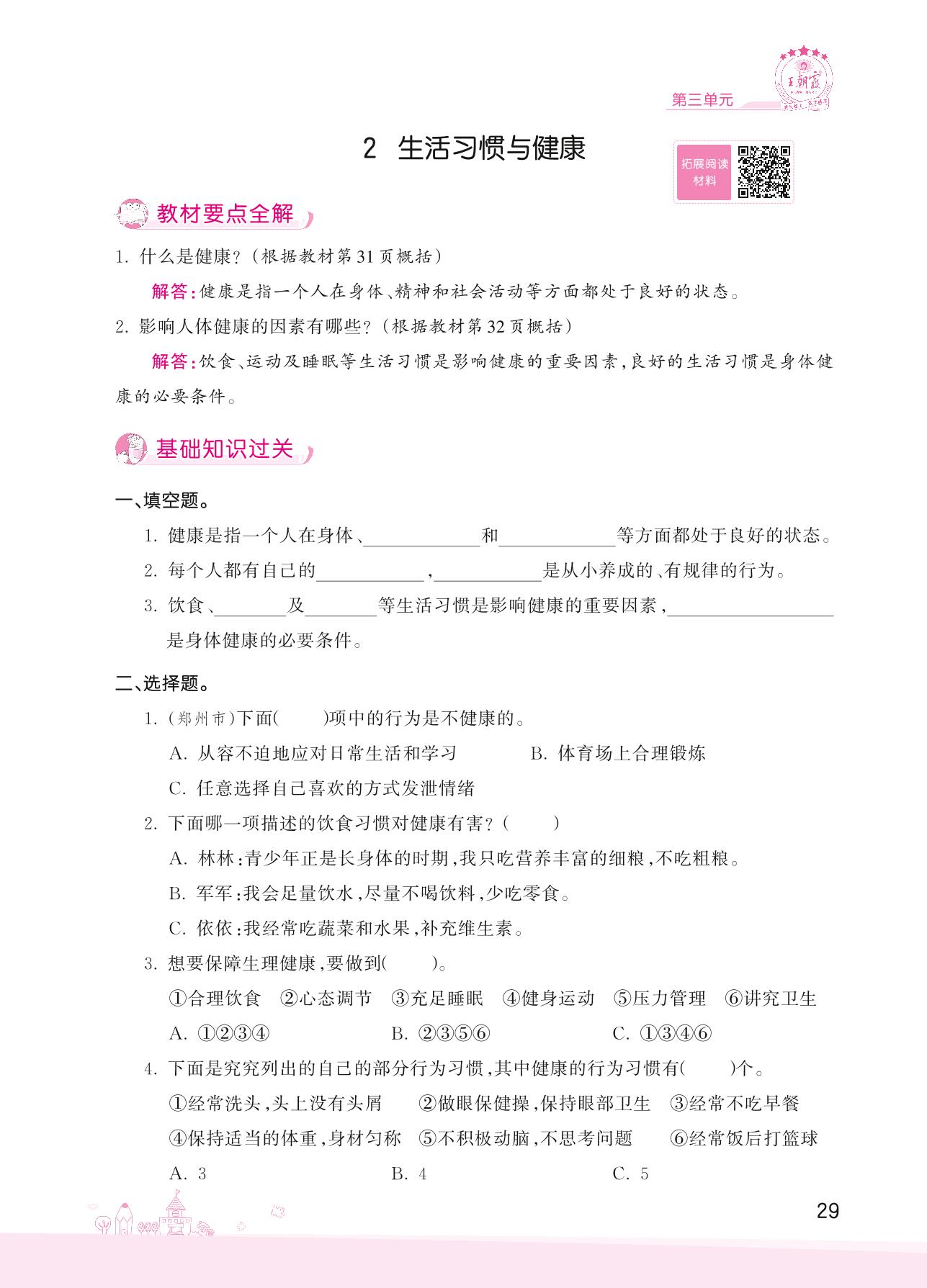 2022上册五年级科学大象版 第三单元 健康成长——2 生活习惯与健康