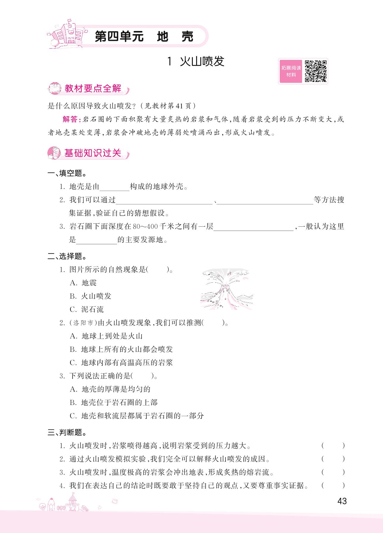 2022上册五年级科学大象版 第四单元 地壳——1 火山喷发