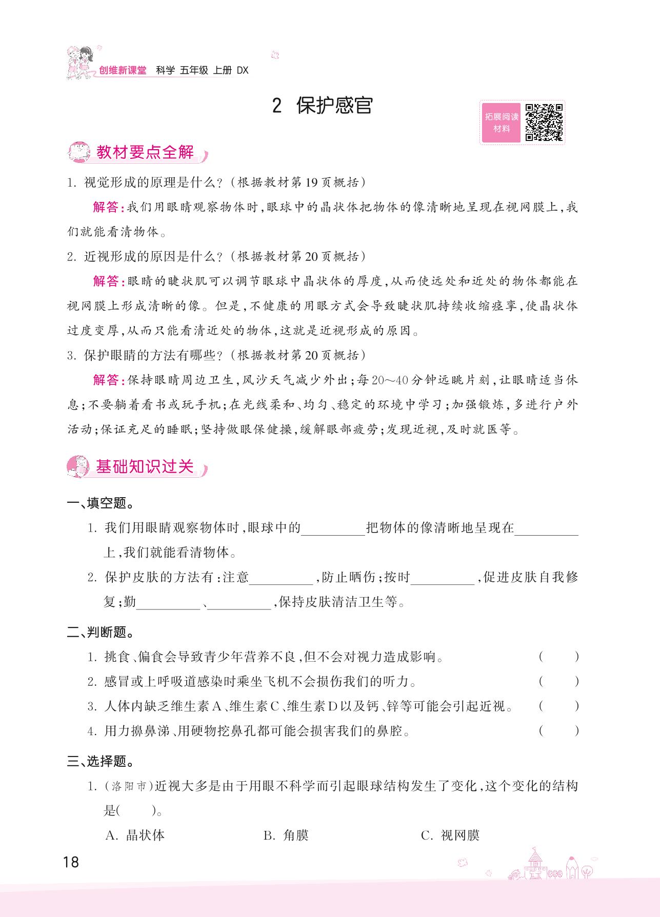 2022上册五年级科学大象版 第二单元 人体司令部——2 保护感官